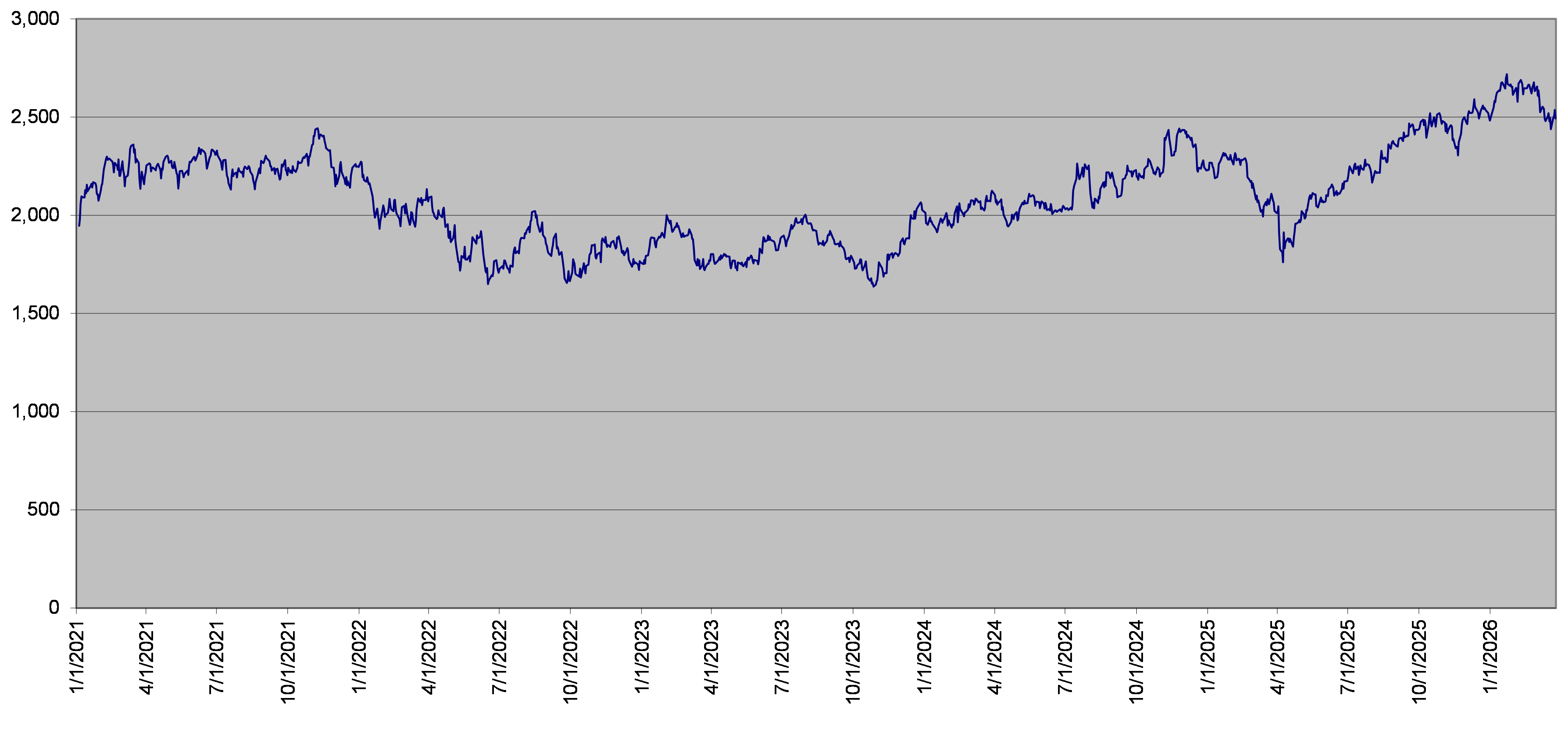 SPX Index Daily Closing Levels January 1, 2021 to March 27, 2026 |