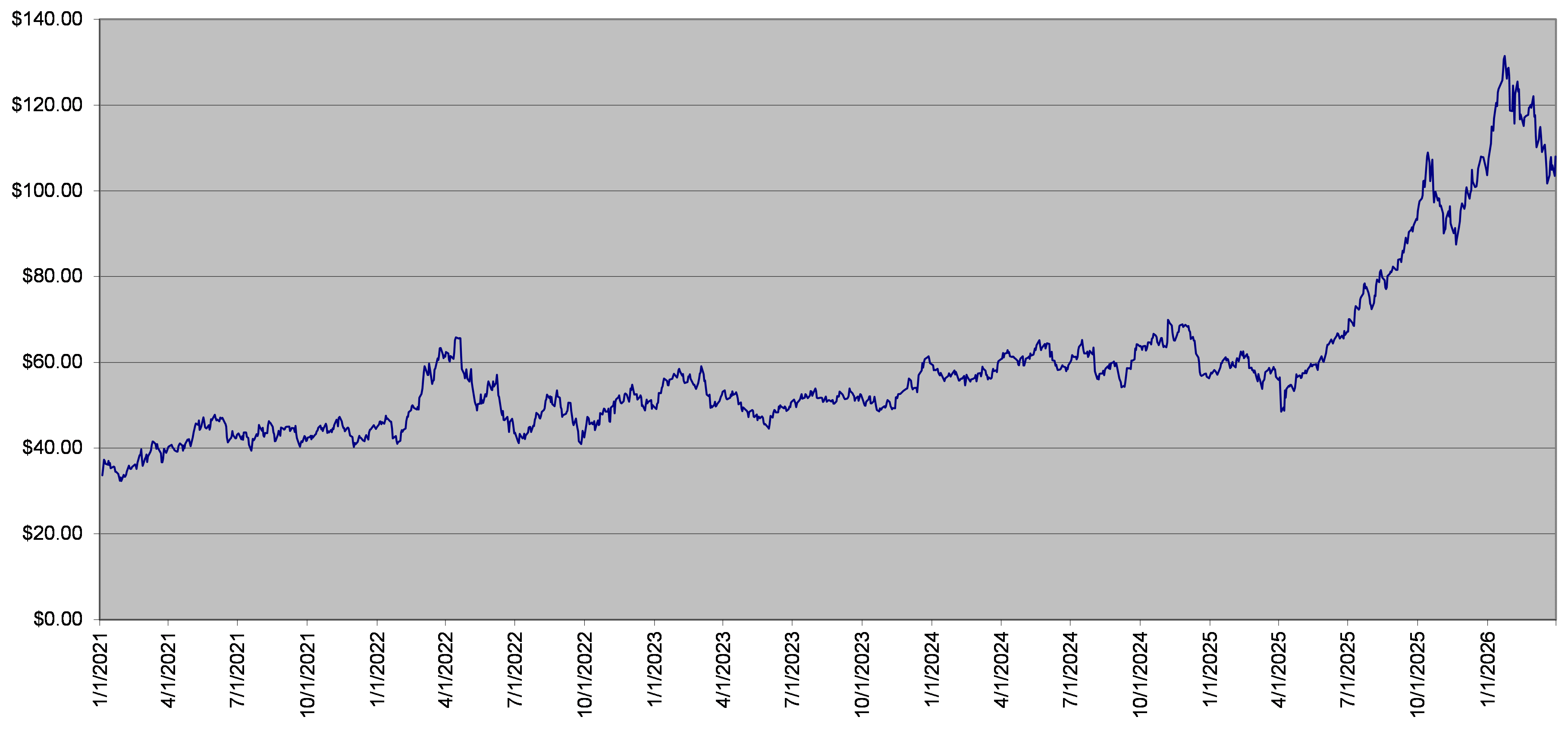 The closing level of the XME Fund on March 31, 2026 was $108.01. The following graph sets forth the daily closing levels of the underlier for the period noted below. We obtained the historical information presented in this document from Bloomberg Financial Markets, without independent verification. The underlier has at times experienced periods of high volatility. You should not take the historical closing levels of the underlier as an indication of its future performance, and no assurance can be given as to the closing level of the underlier at any time.