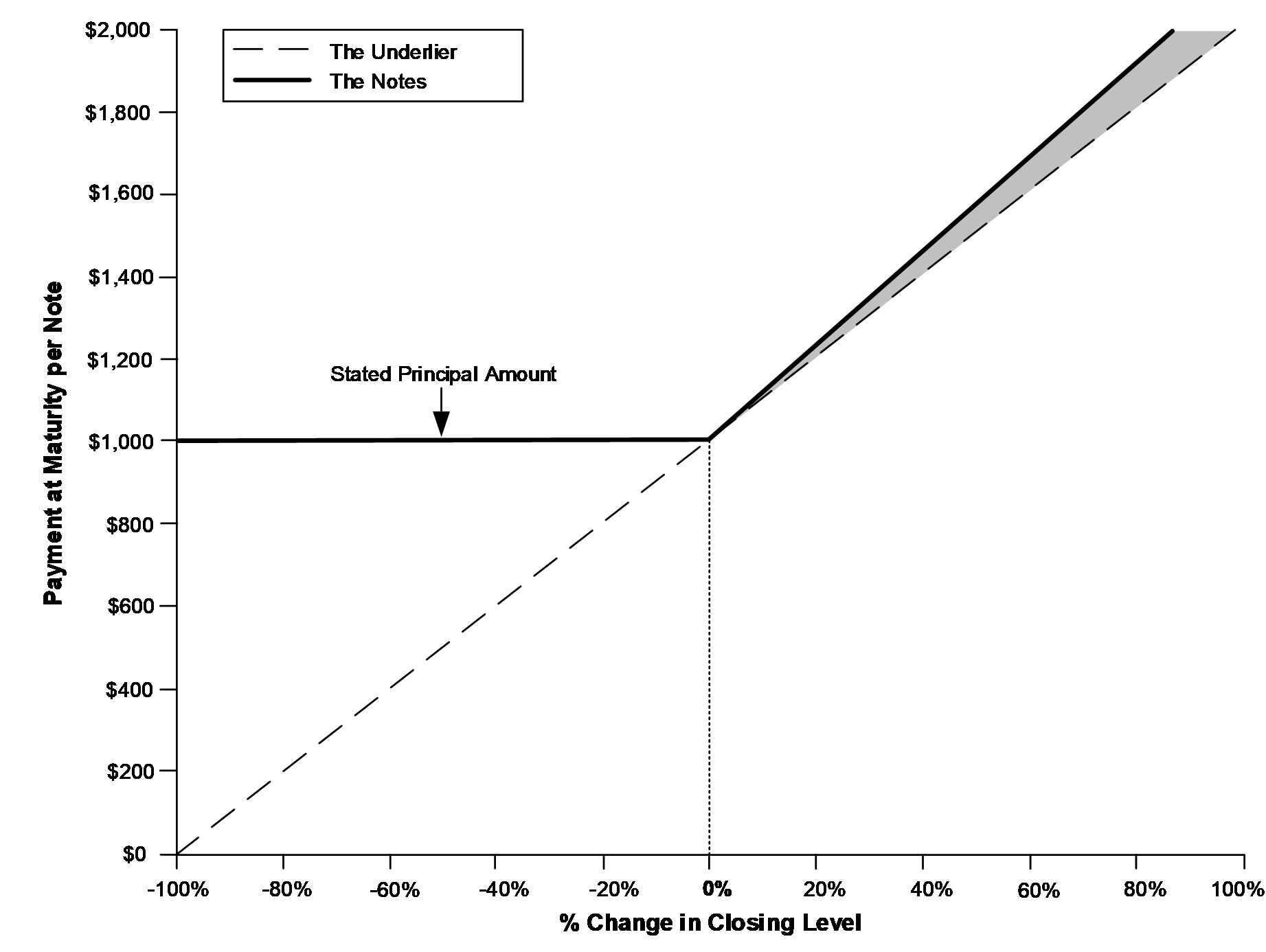 ■Payment at maturity. At maturity, if the final level is greater than the initial level, investors will receive the stated principal amount plus the upside payment. If, however, the final level is equal to or less than the initial level, investors will receive only the stated principal amount at maturity.