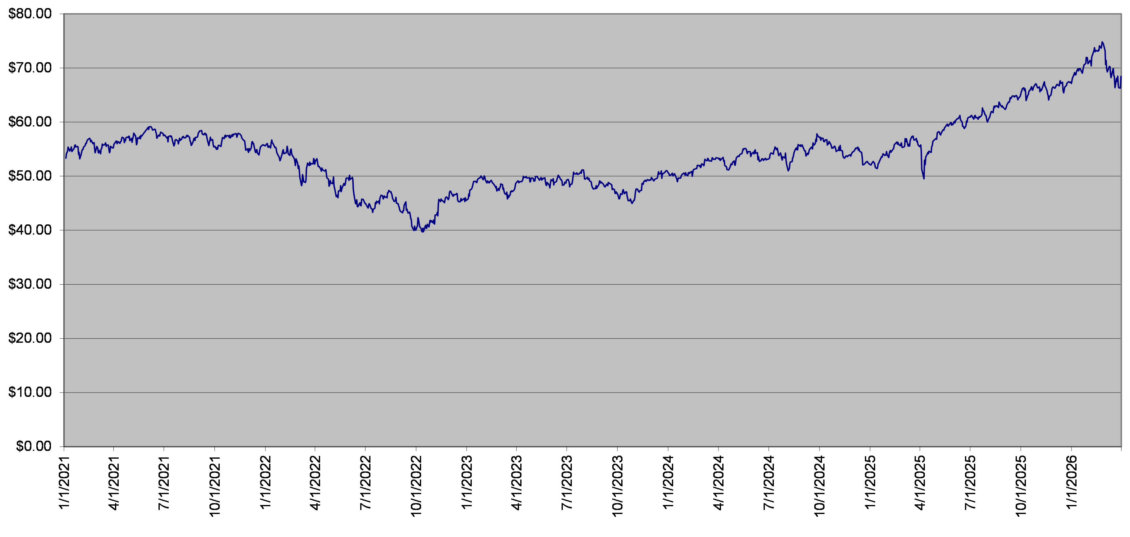 ACWX Fund Daily Closing Levels January 1, 2021 to March 31, 2026 |