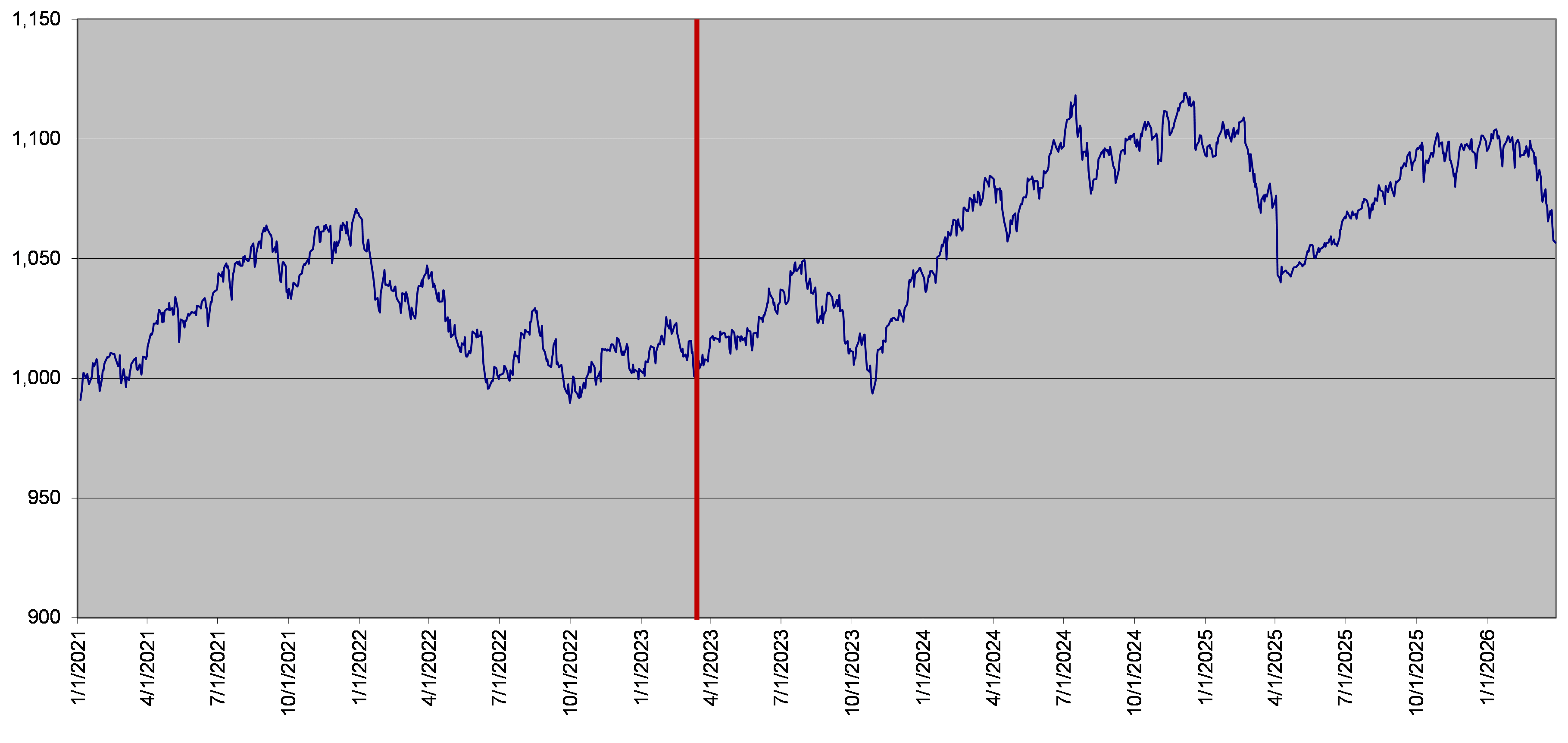 The closing level of the underlier on March 30, 2026 was 1,056.61. The following graph sets forth the hypothetical retrospective and daily closing levels of the underlier for the period noted below. No assurance can be given as to the closing level of the underlier at any time.