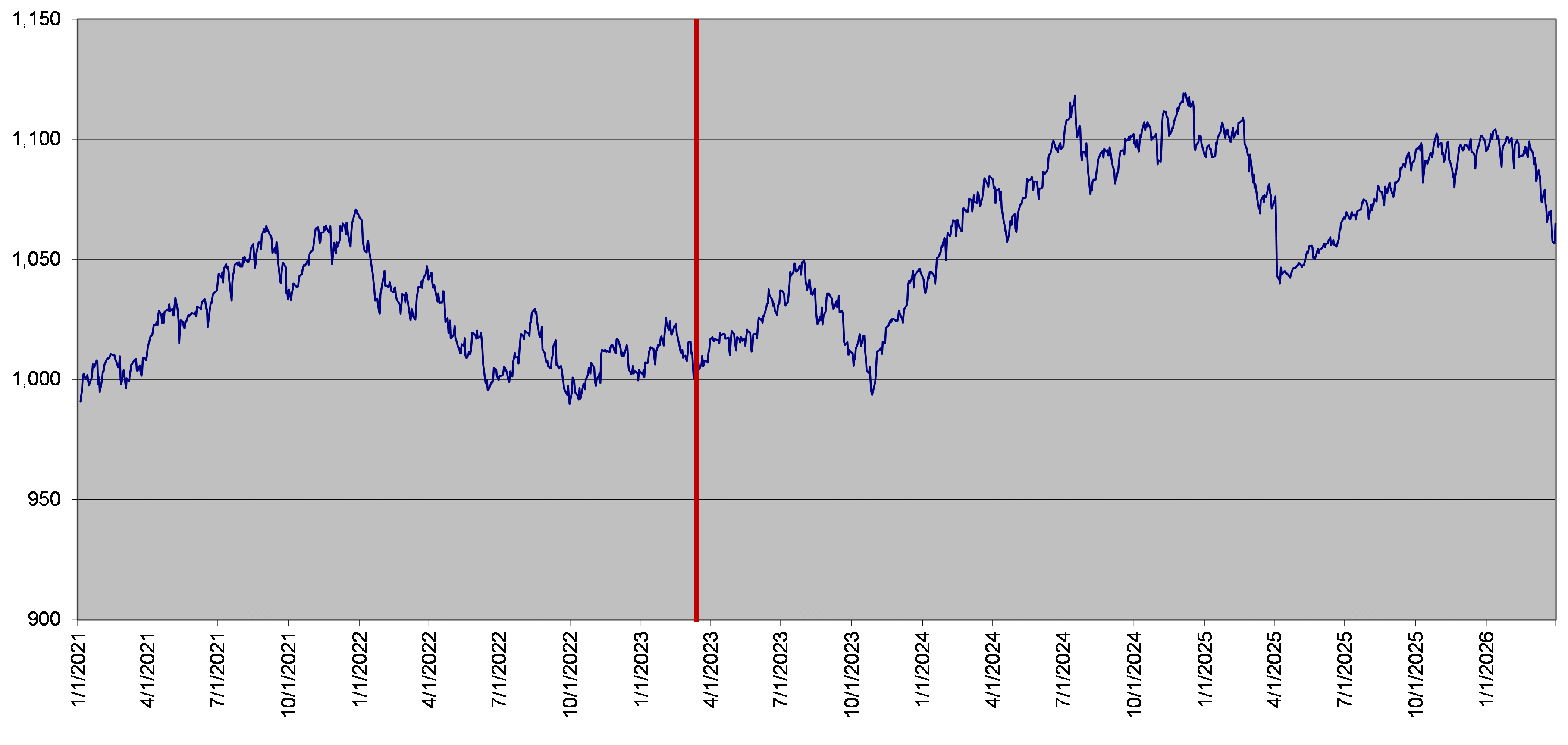 The closing level of the underlier on March 31, 2026 was 1,064.87. The following graph sets forth the hypothetical retrospective and daily closing levels of the underlier for the period noted below. No assurance can be given as to the closing level of the underlier at any time.
