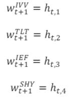 a.The 4×1 vector of weights ℎ𝑡 output from the optimization in the previous section are implemented on a one business day lag to produce Final BAUSE5X Index Daily Weights for the ETF constituents effective at close of business day t+1: