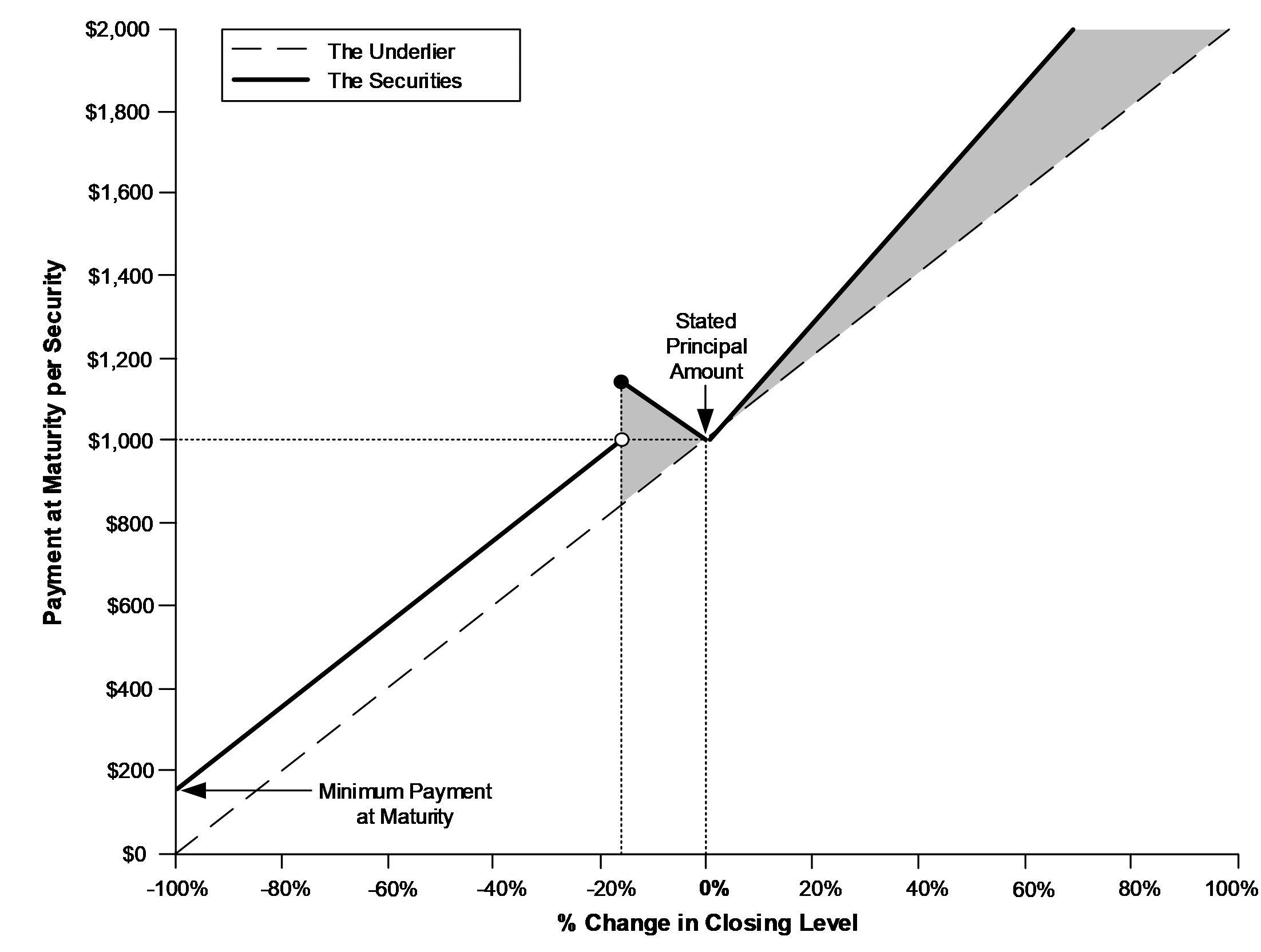 oIf the underlier depreciates 95%, investors will lose 80% of their principal and receive only $200 per security at maturity, or 20% of the stated principal amount.