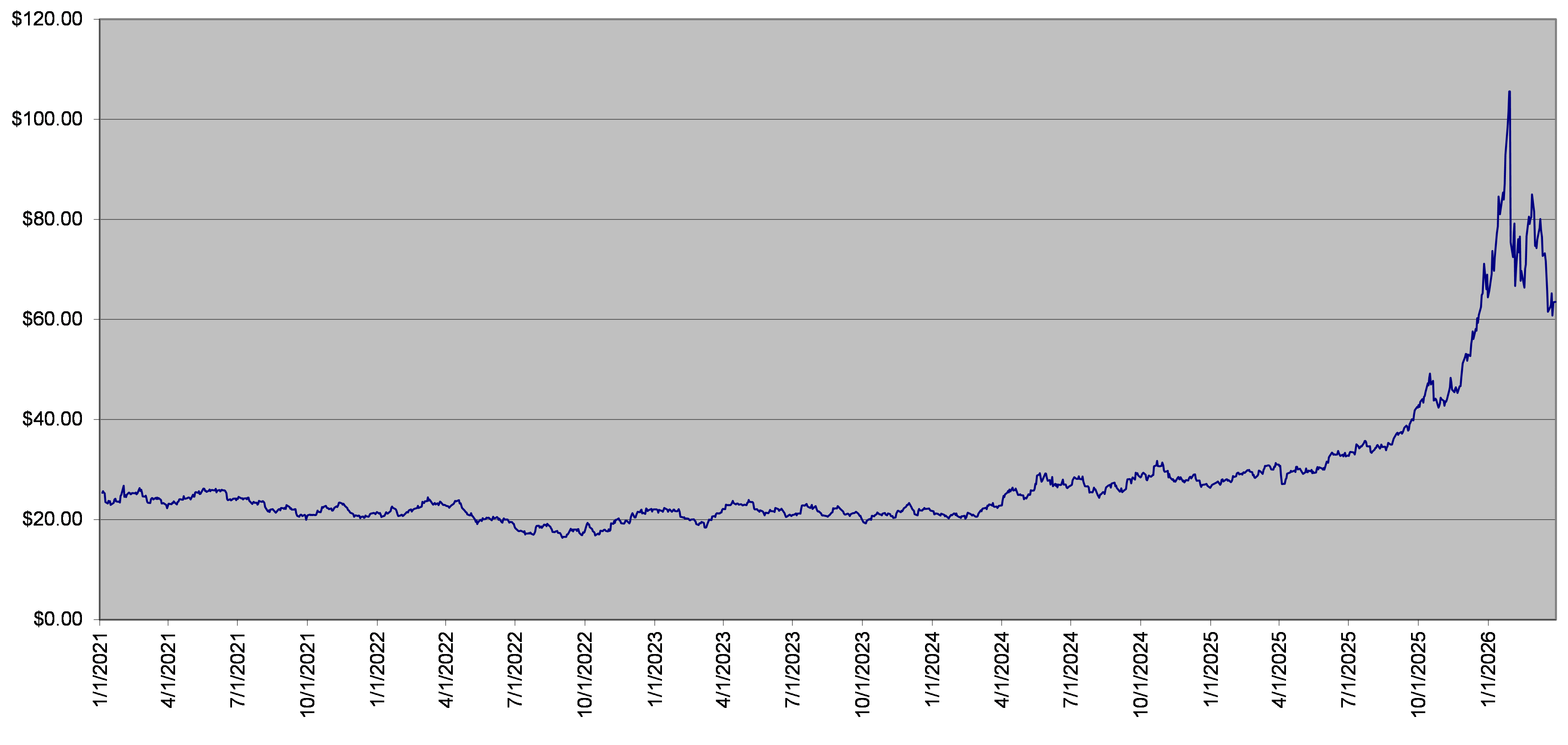 The closing level of the underlier on March 30, 2026 was $63.52. The following graph sets forth the daily closing levels of the underlier for the period noted below. We obtained the historical information presented in this document from Bloomberg Financial Markets, without independent verification. The underlier has at times experienced periods of high volatility. You should not take the historical closing levels of the underlier as an indication of its future performance, and no assurance can be given as to the closing level of the underlier at any time.