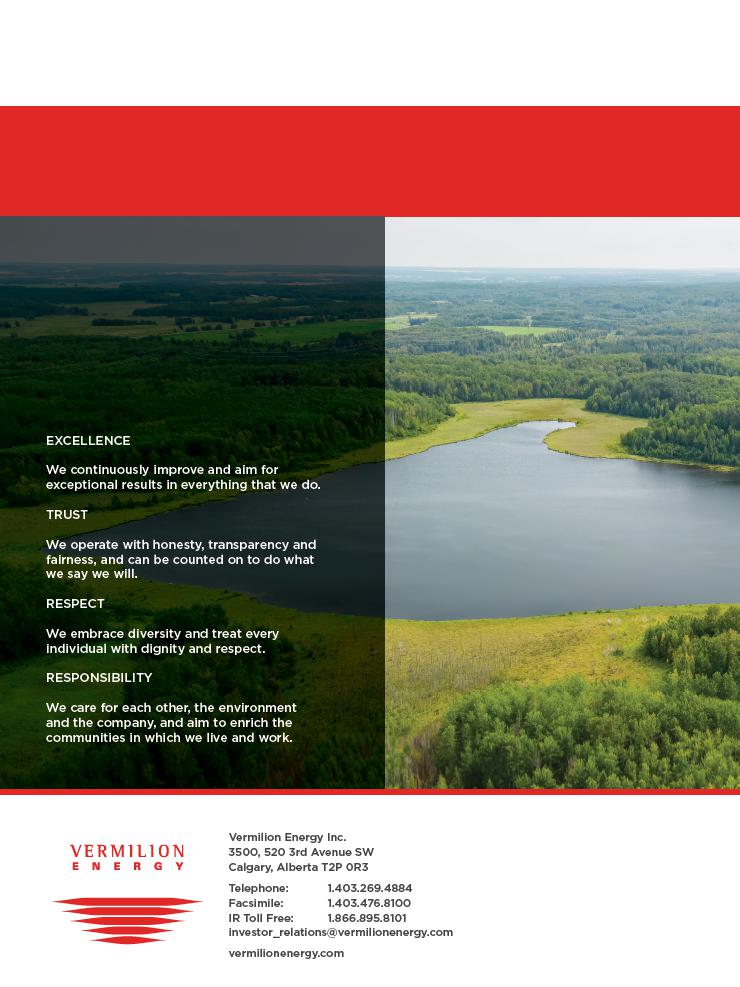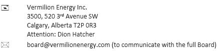 Vermilion Energy Inc. ("Vermilion", the "Company", "we", "us", "our") hopes you join us at our shareholder meeting. Please read this Notice of Meeting, Proxy Statement and Management Information Circular ("Circular") and then vote your common shares.