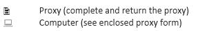 | • | Appointed Proxy: The control number or username provided by the transfer agent. |