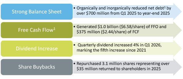 Vermilion announced its 2026 budget, the first full year as a Global Gas Producer with our repositioned assets, as part of the Q3 2025 release on November 5, 2025. Compared to 2024 - the most recent year prior to our asset high-grading - our 2026 operational guidance reflects an over 40% increase in production per share, as well as a 30% structural improvement in capital efficiency and operating costs. We view these key operational metrics as leading indicators of an improving business that we expect to translate to our financial results, including profitability metrics such as return on capital employed, and to ultimately drive improved performance on relative TSR. Between the Q3 2025 release and March 18, 2026, Vermilion’s total shareholder return was 70%, outperforming the peer group average by approximately 30% over this period.