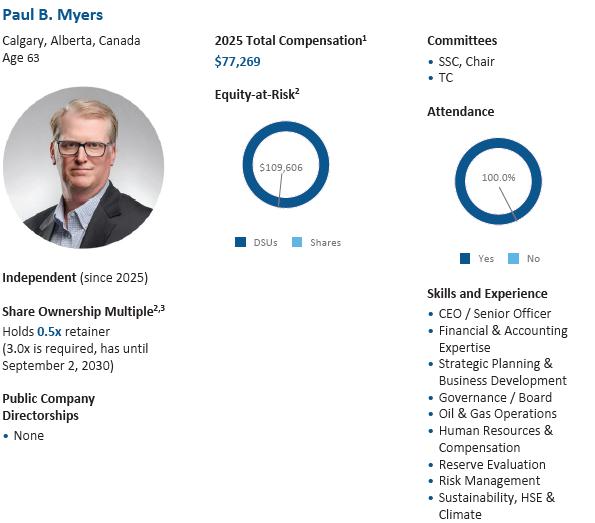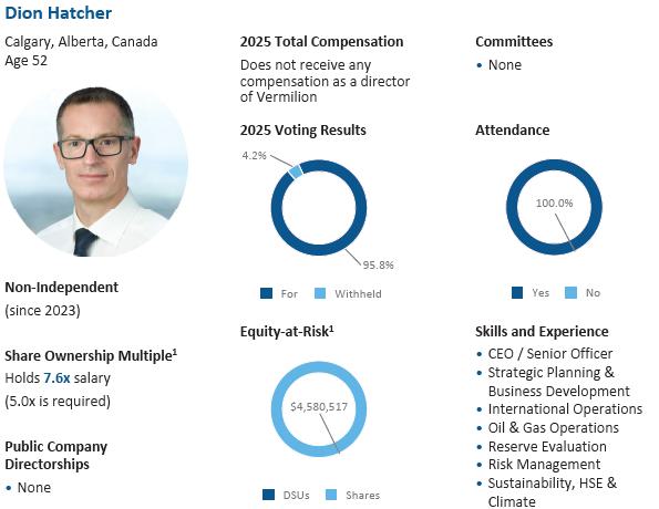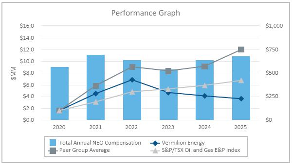 Performance programs delivered payouts at or above target, reflecting the achievement of critical operational and strategic milestones. This approach reinforces alignment with long-term shareholder value creation, recognizing meaningful progress during a year of changes in the portfolio. As a result, Vermilion is well-positioned to translate these initiatives into sustained shareholder value.
