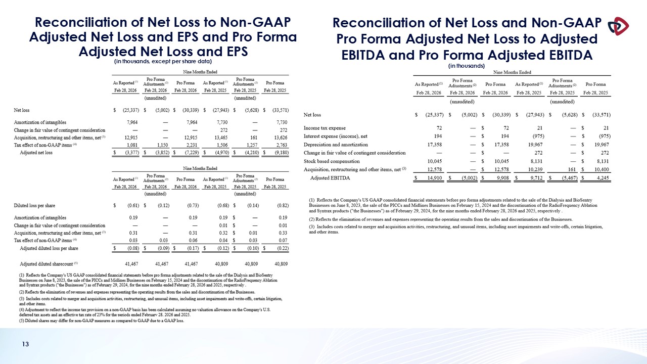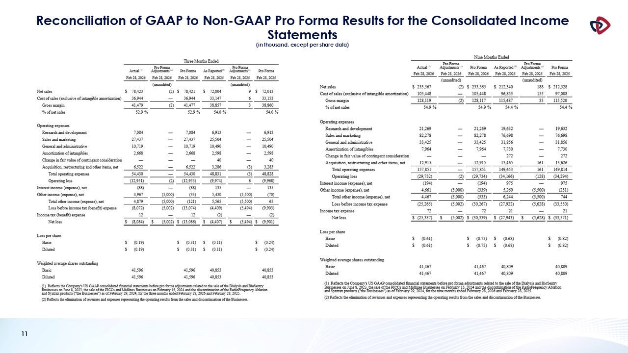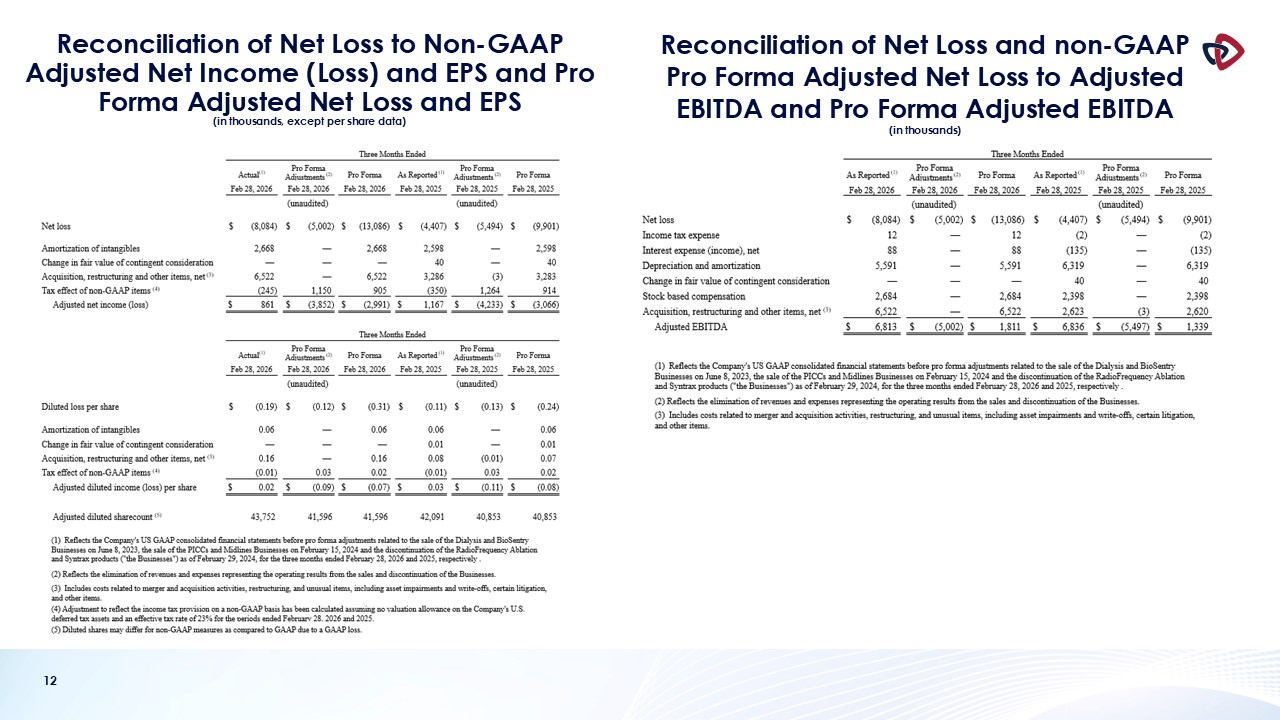financial reporting measures prepared in accordance with GAAP. In this presentation, AngioDynamics has reported pro forma results, adjusted EBITDA (income before interest, taxes, depreciation and amortization and stock-based compensation);
