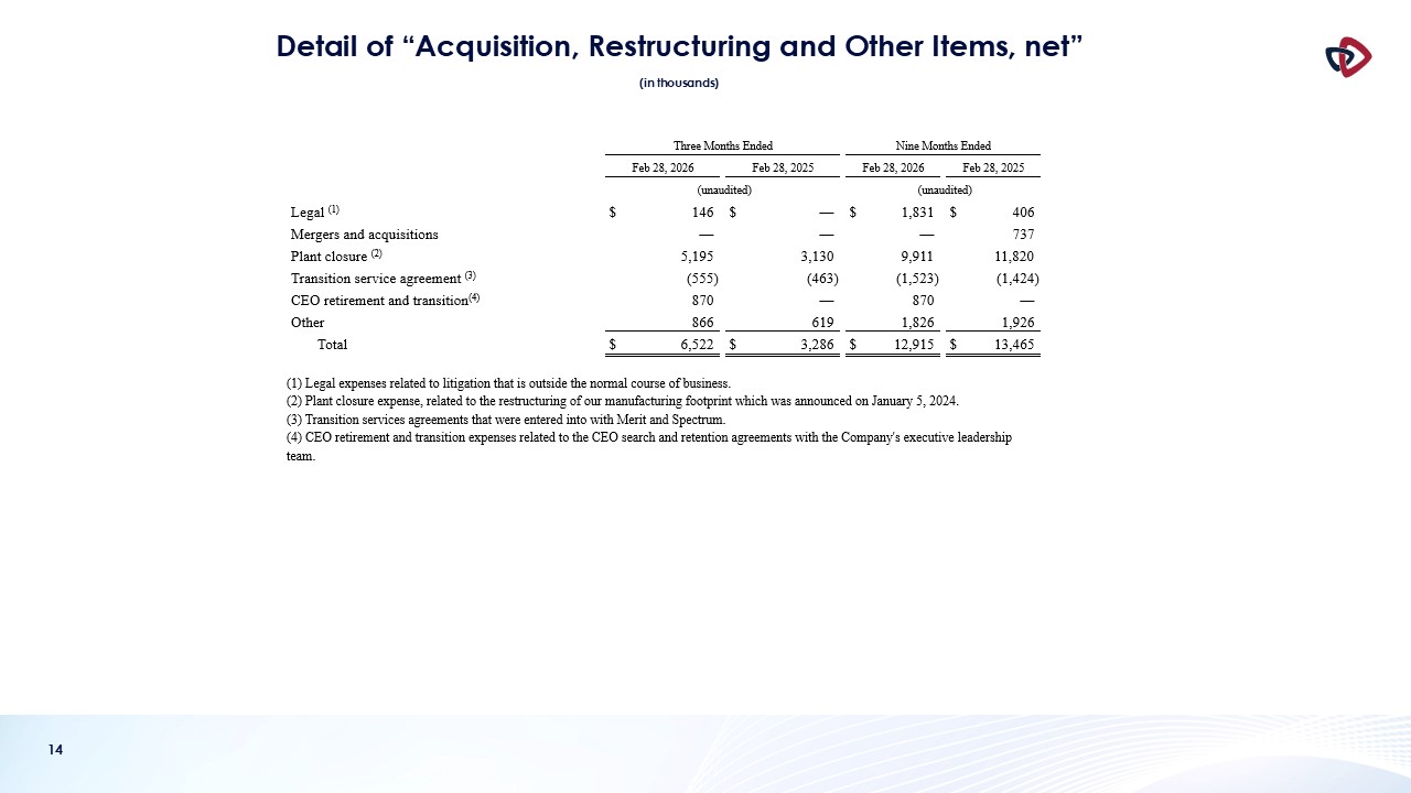 AngioDynamics’ performance over different periods. By using these non-GAAP measures, management believes that investors get a better picture of the performance of AngioDynamics’ underlying business. Management encourages investors to review
