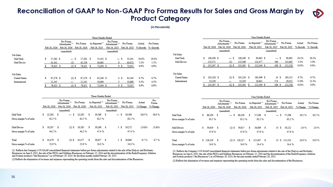 AngioDynamics’ financial results. Please see the tables that follow for a reconciliation of non-GAAP measures to measures prepared in accordance with GAAP.