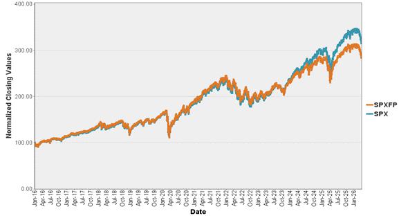 In the graph below, references to “SPXFP” are to the S&P 500 Futures Excess Return Index and references to “SPX” are to the S&P 500® Index.