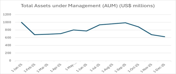 Valour’s AUM on December 31, 2025 was $622.3 million. Average AUM for 2025 increased to $809.9 million from $645.3 million 2024. Valour monetizes its AUM primarily through trading, staking, management fees, and trade-flow arbitrage. In addition to management fees, Valour retains staking yields as revenue, capturing value directly from the digital assets held in its ETPs. This vertically integrated model enables recurring, protocol-driven revenue as AUM grows. As of December 31, 2025, Valour’s ETPs with the highest AUM were: