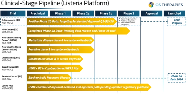 We have engaged in ongoing regulatory interactions with the FDA, the United Kingdom Medicines and Healthcare products Regulatory Agency (MHRA), and the European Medicines Agency (EMA) regarding the clinical and biomarker data for OST-HER2 in recurrent, fully resected pulmonary metastatic Osteosarcoma. Following submission of the Non-Clinical and Chemistry, Manufacturing & Controls (CMC) modules of our Biologics License Application (BLA) to the FDA at the end of January 2026, we anticipate submitting the clinical BLA module following an expected Type B meeting with the FDA in the second quarter of 2026 and completing conditional Marketing Authorization Application (MAA) submissions to both the MHRA and the EMA in the second quarter of 2026. We also anticipate releasing additional biomarker data in the second quarter of 2026 to further characterize immune pathway activation and its relationship to clinical outcomes. We expect to initiate confirmatory clinical studies in the third quarter of 2026 in support of conditional approval pathways. If OST-HER2 receives approval under the FDA’s Accelerated Approval Program prior to September 30, 2029, we would become eligible to receive a Priority Review Voucher under the Rare Pediatric Disease Designation Program.
