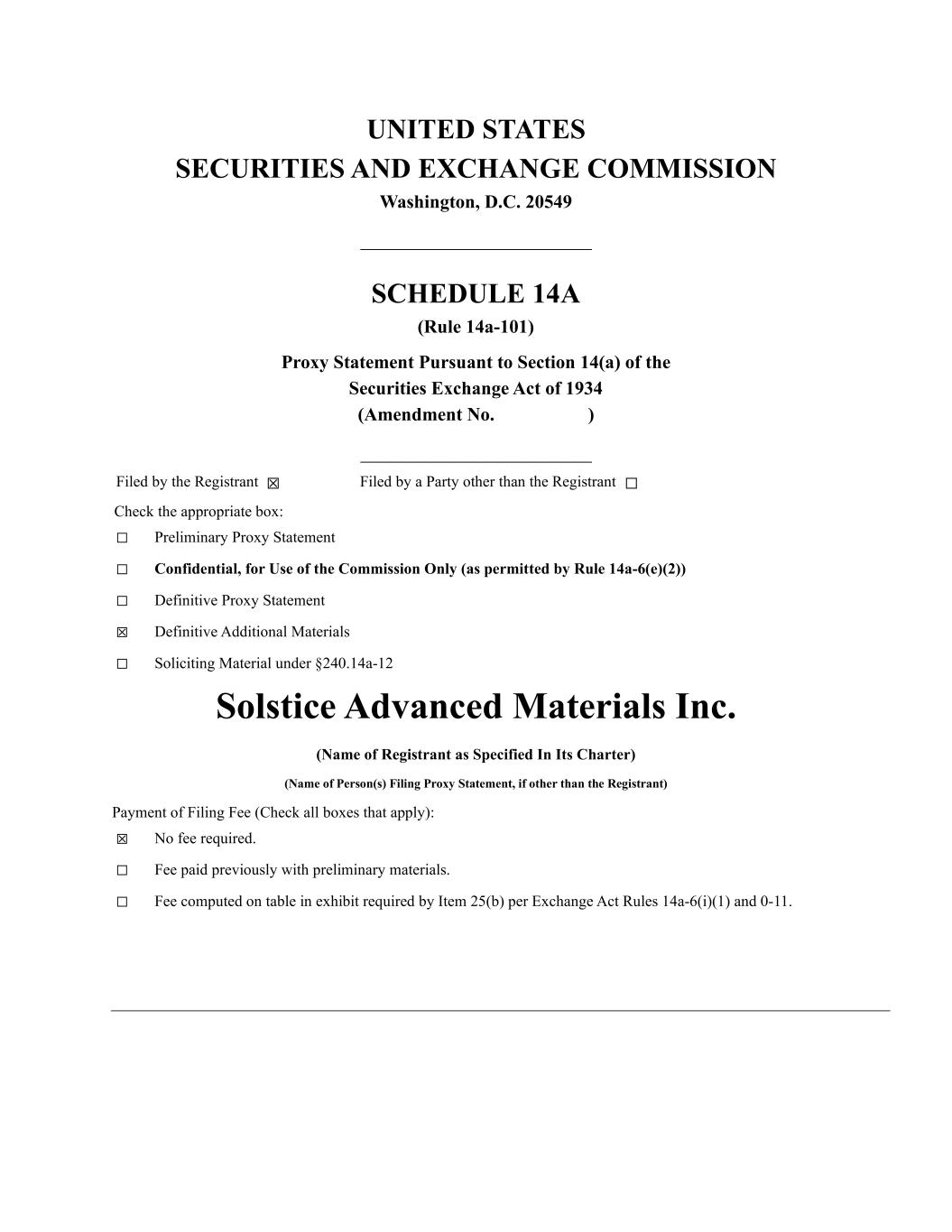 Your Vote Counts! *Please check the meeting materials for any special requirements for meeting attendance. Smartphone users Point your camera here and vote without entering a control number For complete information and to vote, visit www.ProxyVote.com Control # V92024-P45109 SOLSTICE ADVANCED MATERIALS INC. You invested in SOLSTICE ADVANCED MATERIALS INC. and it’s time to vote! You have the right to vote on proposals being presented at the Annual Meeting. This is an important notice regarding the availability of proxy materials for the shareowner meeting to be held on May 22, 2026. Vote Virtually at the Meeting* May 22, 2026 10:30 a.m. EDT Virtually at: www.virtualshareholdermeeting.com/SOLS2026 Get informed before you vote View the 2026 Notice and Proxy Statement and 2025 Annual Report online OR you can receive a free paper or email copy of the material(s) by requesting prior to May 8, 2026. If you would like to request a copy of the material(s) for this and/or future shareowner meetings, you may (1) visit www.ProxyVote.com, (2) call 1-800-579-1639, or (3) send an email to sendmaterial@proxyvote.com. If sending an email, please include your control number (indicated below) in the subject line. Unless requested, you will not otherwise receive a paper or email copy. SOLSTICE ADVANCED MATERIALS INC. 115 TABOR ROAD MORRIS PLAINS, NJ 07950 2026 Annual Meeting Vote by May 21, 2026 11:59 p.m. EDT