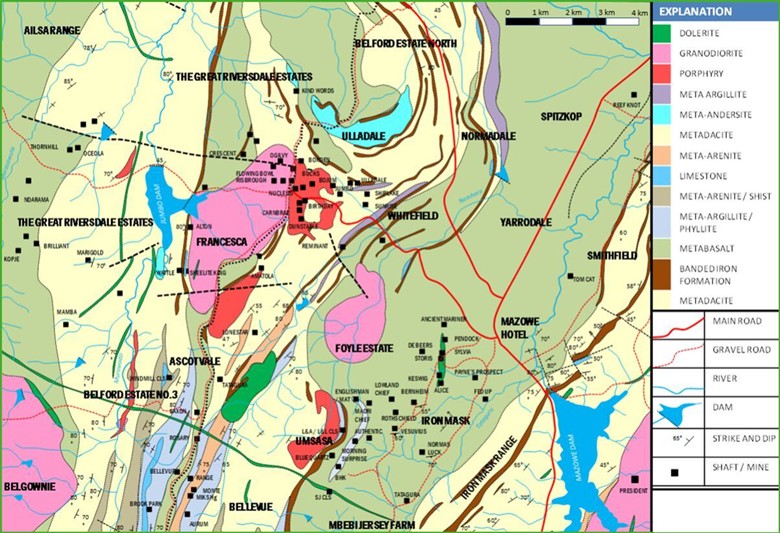 GFM (Gold Fields of Mazowe (Private) Limited) (2018), Gold Fields of Mazowe Mineral Reserves and Resources 30th June 2018, Report on file at Metallon Management Services Ltd., Harare, Zimbabwe.