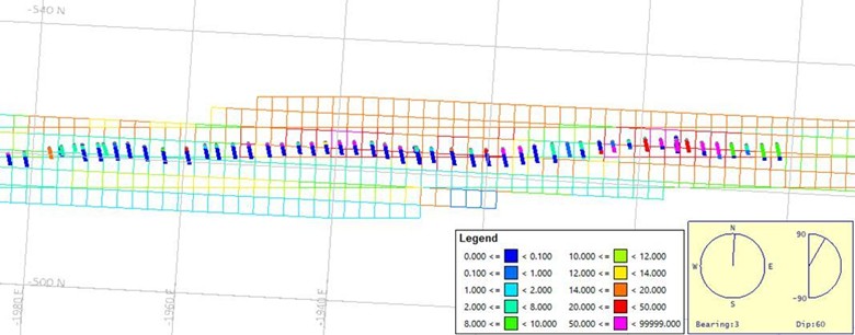 | — | Estimated tonnage and grade: 580,000 t @ 5.50 g/t (102,561 oz) | |||||