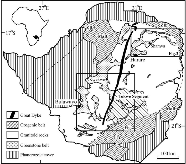 Prendergast, MD (2004), The Bulawayan Supergroup: a late Archaean passive margin-related large igneous province in the Zimbabwe craton, Journal of the Geological Society, vol.161, pp. 431-445.