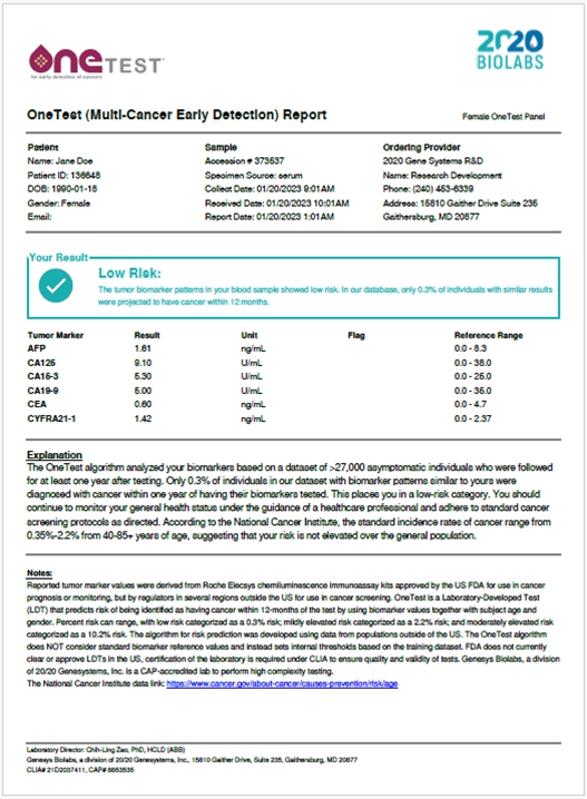 | ● | Acceleration Over Time. Many studies suggest that annual screening with PTMs boosts sensitivity for many cancer types (lung, pancreatic, liver, etc.) and repeat testing of slightly high biomarkers at ~2-month intervals substantially lowers false positive rates. |