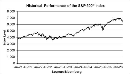 The following graph sets forth the historical performance of the S&P 500® Index based on the daily historical closing levels of the S&P 500® Index from January 4, 2021 through April 2, 2026. The closing level of the S&P 500® Index on April 2, 2026 was 6,582.69. We obtained the closing levels above and below from the Bloomberg Professional® service (“Bloomberg”), without independent verification.