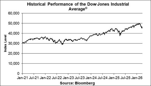The following graph sets forth the historical performance of the Dow Jones Industrial Average® based on the daily historical closing levels of the Dow Jones Industrial Average® from January 4, 2021 through April 2, 2026. The closing level of the Dow Jones Industrial Average® on April 2, 2026 was 46,504.67. We obtained the closing levels above and below from Bloomberg, without independent verification.