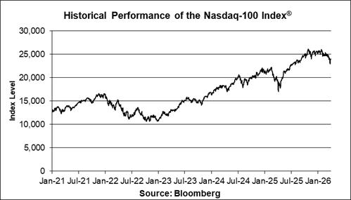The following graph sets forth the historical performance of the Nasdaq-100 Index® based on the daily historical closing levels of the Nasdaq-100 Index® from January 4, 2021 through April 2, 2026. The closing level of the Nasdaq-100 Index® on April 2, 2026 was 24,045.53. We obtained the closing levels above and below from Bloomberg, without independent verification.
