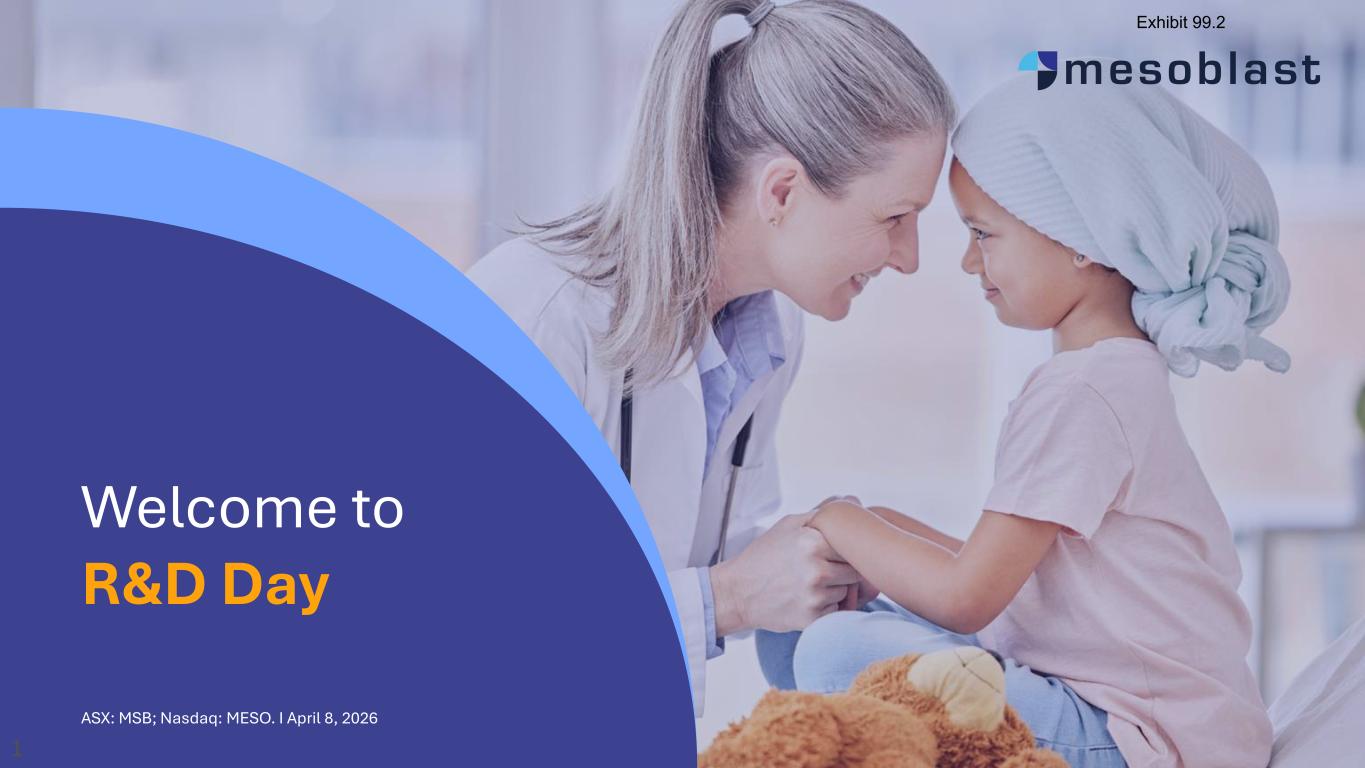 1 ASX: MSB; Nasdaq: MESO. I April 8, 2026 Welcome to R&D Day 1 Exhibit 99.2