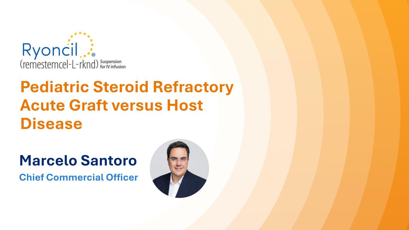 Pediatric Steroid Refractory Acute Graft versus Host Disease Marcelo Santoro Chief Commercial Officer