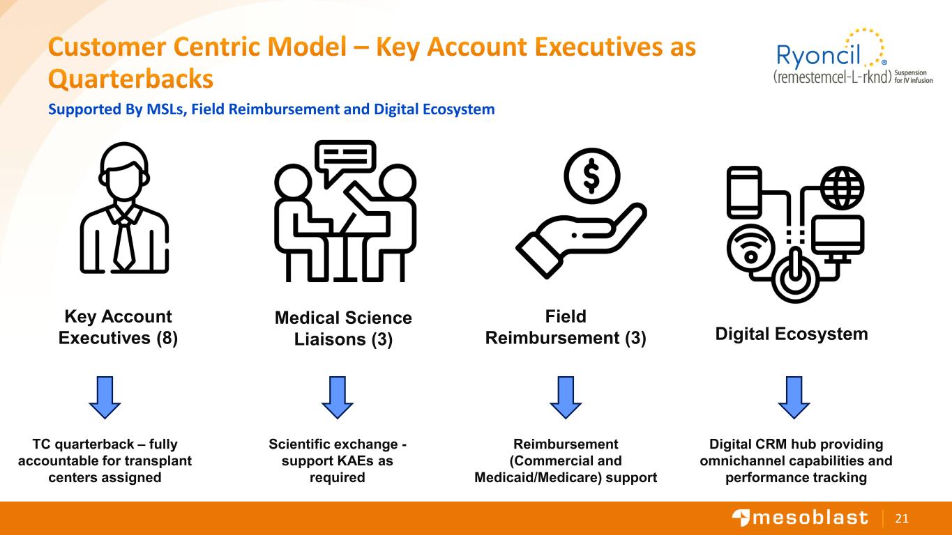 20 Key Accomplishments So Far 98% US lives covered Medicaid in place J-Code received October 2025 50 centers onboarded Net revenue approaching US$100M since launch last year Initial real world experience 84% survival outcomes all with Grade III/IV disease* 30 formulary approvals (13 accounts using specialty pharmacy) Expansion into adult market (phase 3 underway) *Children with steroid refractory active graft versus host disease after completing 28 days of treatment