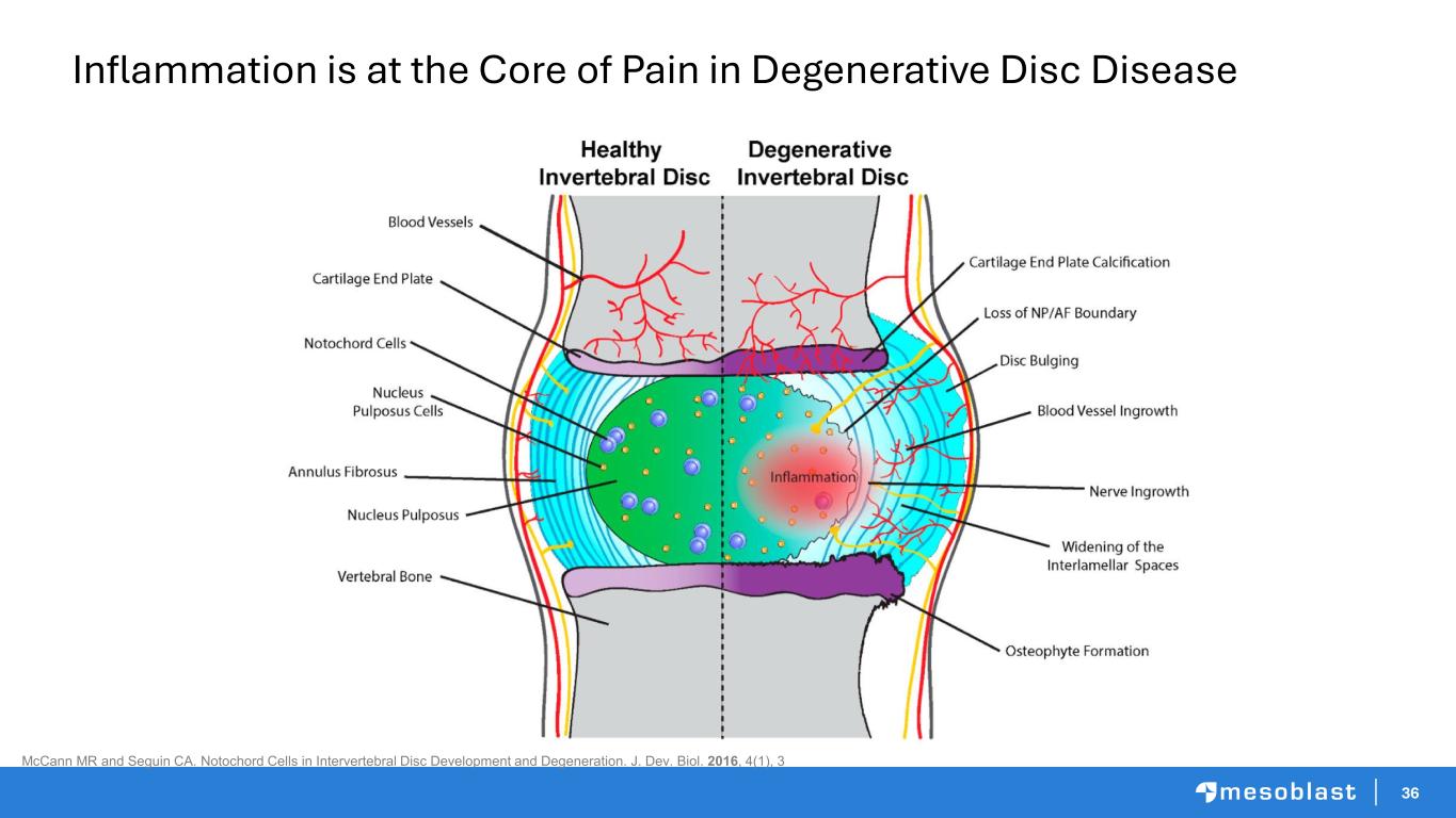 36 McCann MR and Seguin CA. Notochord Cells in Intervertebral Disc Development and Degeneration. J. Dev. Biol. 2016, 4(1), 3 Inflammation is at the Core of Pain in Degenerative Disc Disease