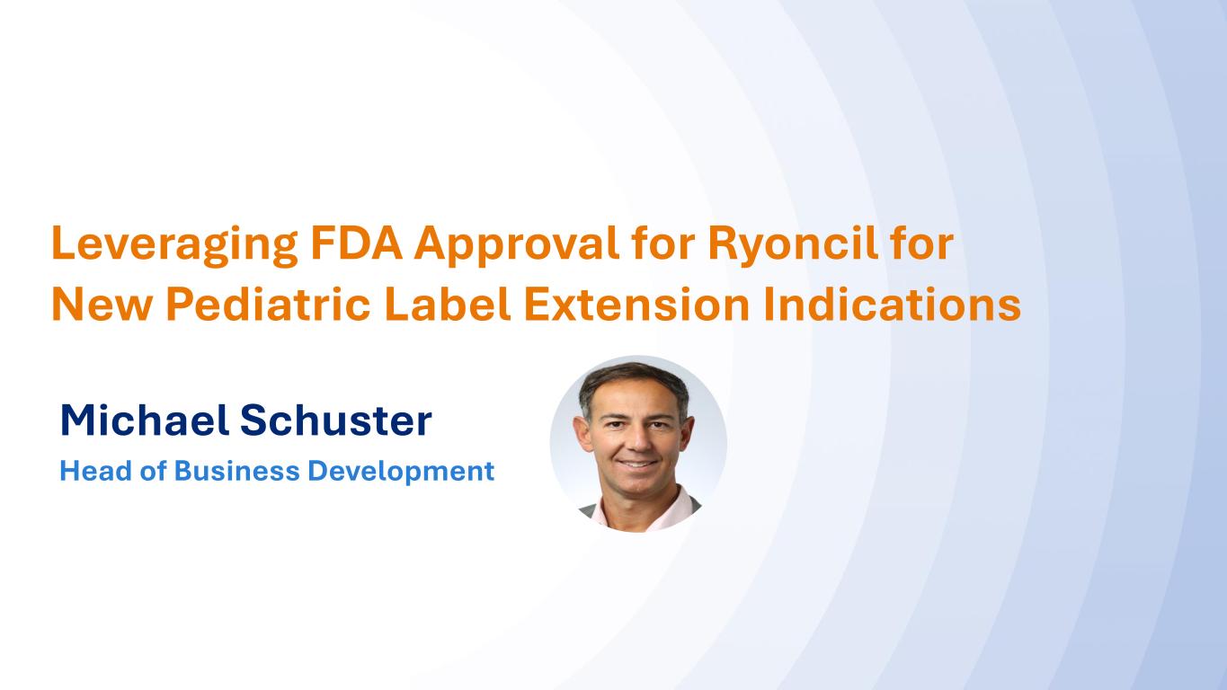 6060 Leveraging FDA Approval for Ryoncil for New Pediatric Label Extension Indications Michael Schuster Head of Business Development