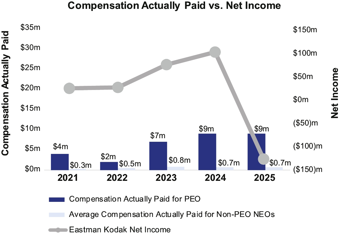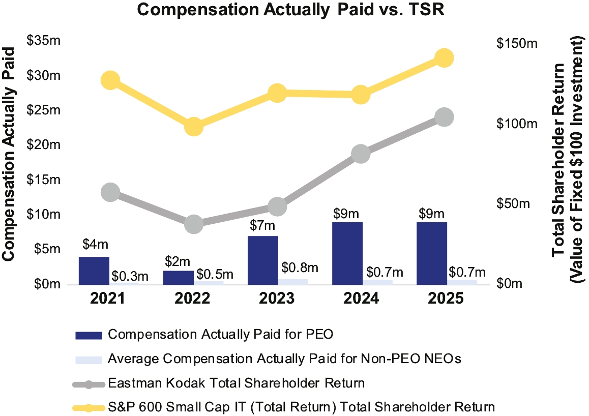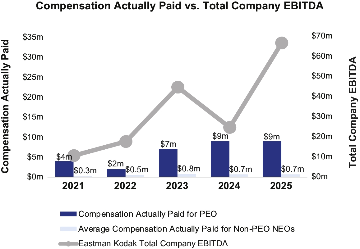 Nicholas Continenza, the son of Mr. Continenza, our Executive Chairman and Chief Executive Officer, has been employed by Kodak as Global Commercial Counsel since July 2021. In 2025, Nicholas Continenza received total cash compensation of approximately $301,528 consisting of base salary and bonus amounts. In May 2023, Nicholas Continenza received an equity grant of 30,000 restricted stock units (RSUs) with a grant date value of $128,400, which RSUs vest over a three-year period and are subject to his continued employment on the applicable vesting dates. The first and second tranche vested on May 17, 2024 and May 17, 2025, respectively and the third tranche vests on May 17, 2026. In August 2025, Nicholas Continenza received an equity grant of 50,000 RSUs with a grant date value of $322,500, which RSUs vest over a three-year period and are subject to his continued employment on the applicable vesting dates. Nicholas Continenza is eligible to participate in Kodak’s benefit plans, policies and arrangements that are provided to employees generally.