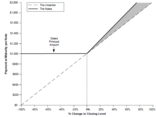 ■Payment at maturity. At maturity, if the final level is greater than the initial level, investors will receive the stated principal amount plus the upside payment. If, however, the final level is equal to or less than the initial level, investors will receive only the stated principal amount at maturity.