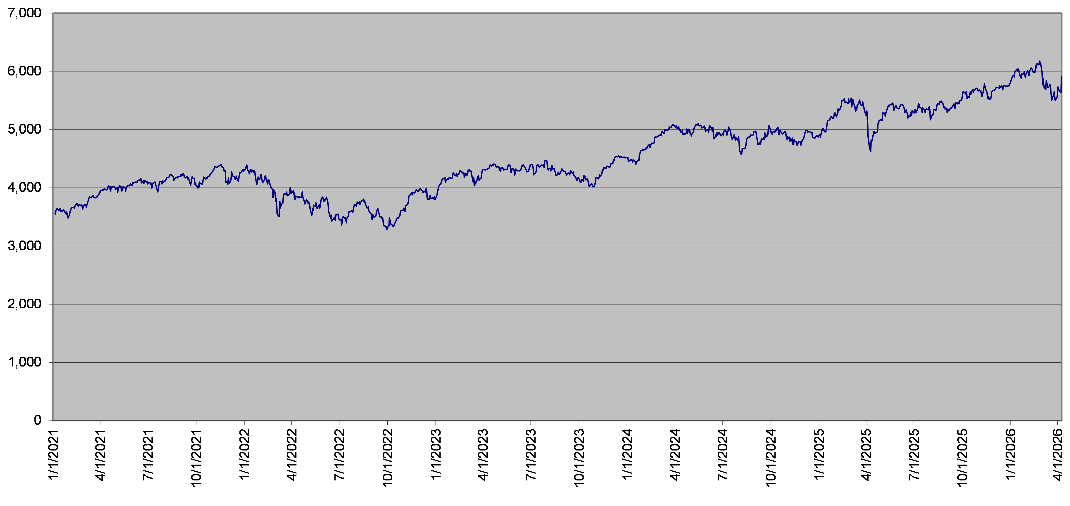 The closing level of the underlier on April 8, 2026 was 5,913.37. The following graph sets forth the daily closing levels of the underlier for the period noted below. We obtained the historical information presented in this document from Bloomberg Financial Markets, without independent verification. The underlier has at times experienced periods of high volatility. You should not take the historical closing levels of the underlier as an indication of its future performance, and no assurance can be given as to the closing level of the underlier at any time.