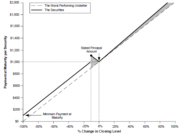 oIf the worst performing underlier depreciates 5%, investors will receive $1,050 per security, or 105% of the stated principal amount.