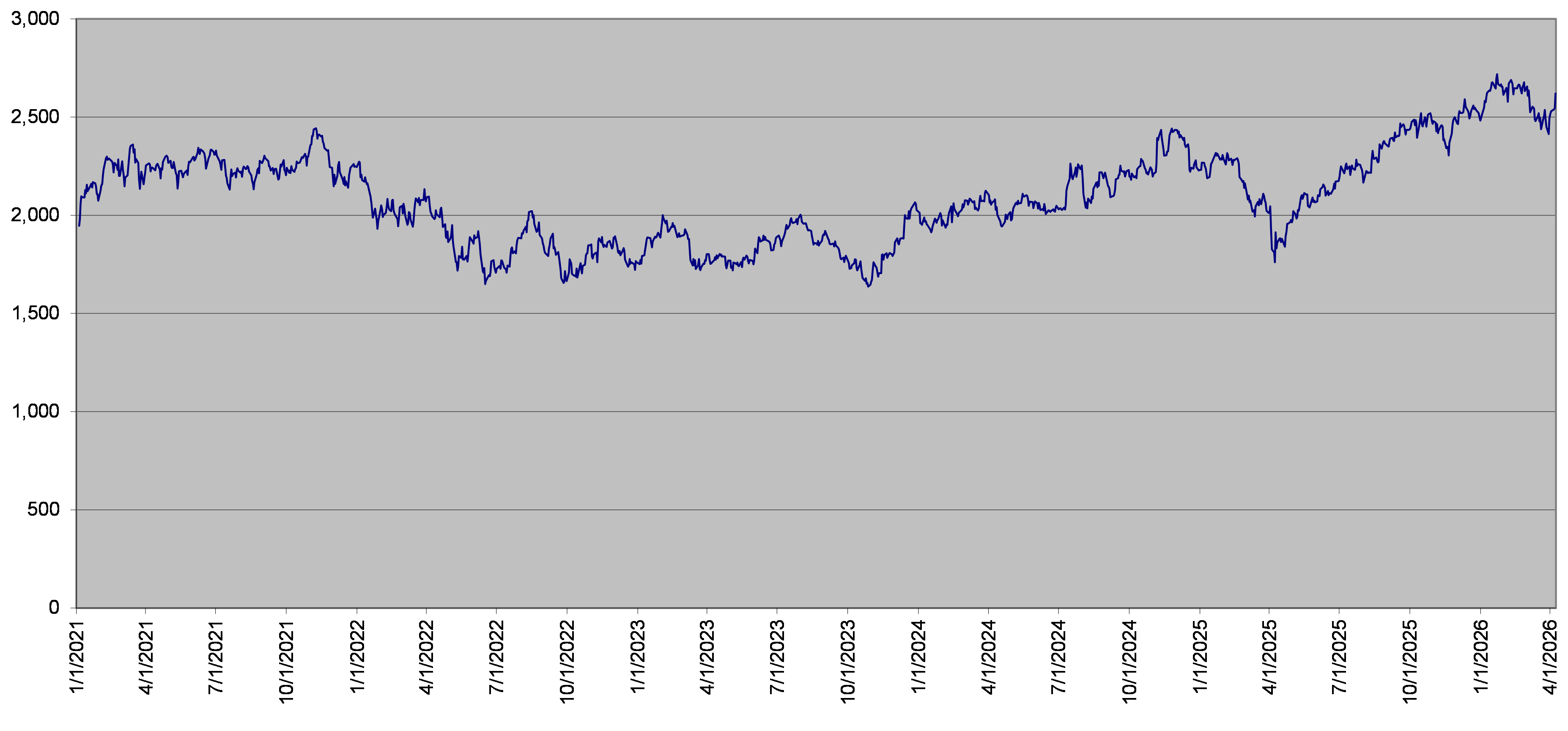 SPX Index Daily Closing Levels January 1, 2021 to April 8, 2026 |