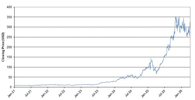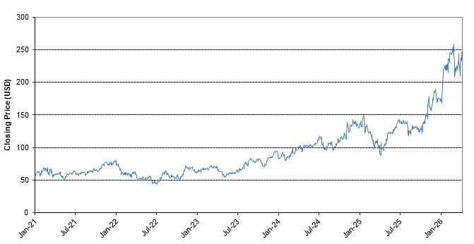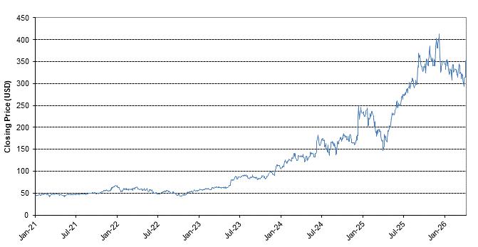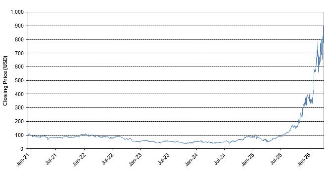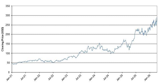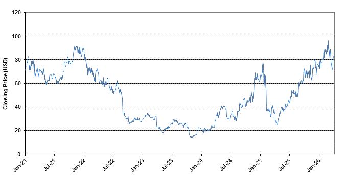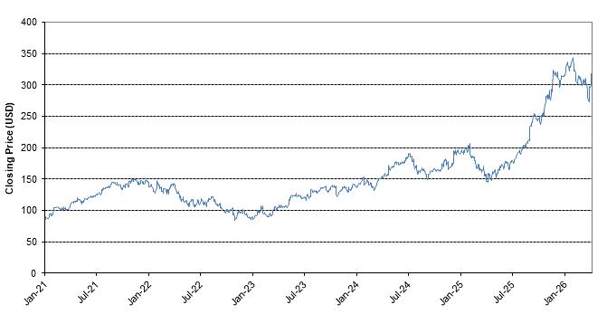 The graphs below set forth the historical performance of the Basket Components based on the daily Closing Values from January 4, 2021 through April 9, 2026. We obtained the Closing Values shown in the graphs below from Bloomberg Professional® service (“Bloomberg”). We have not independently verified the accuracy or completeness of the information obtained from Bloomberg. The Closing Values below may reflect adjustments in response to certain corporate actions, such as stock splits, public offerings, mergers and acquisitions, spin-offs, extraordinary dividends, delistings and bankruptcy.