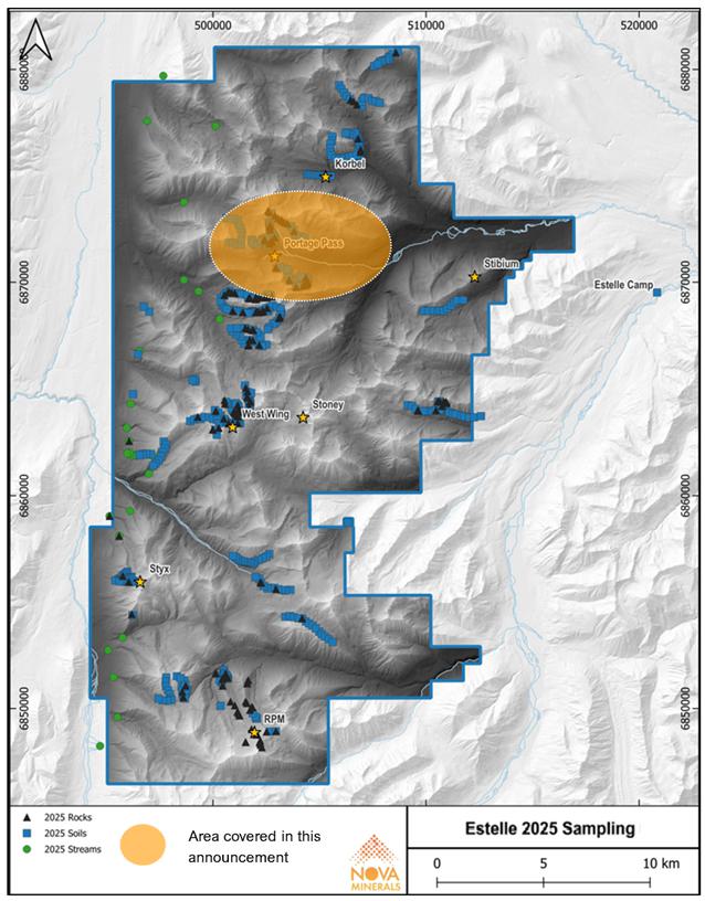 Anchorage Alaska, April 14, 2026 - Nova Minerals Limited (“Nova” or the “Company”) (NASDAQ: NVA) (ASX: NVA) (FRA: QM3) ) is pleased to announce assay results from its 2025 surface sampling program in the Portage Pass area of its flagship Estelle Gold and Critical Minerals Project, located within Alaska’s prolific Tintina Gold Belt has identified a new broad zone of gold mineralization 2.5km from Korbel.