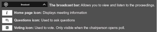 If you would like to watch the audio webcast press the broadcast icon. If viewing on a computer, the audio webcast will appear at the side automatically once the meeting has started.