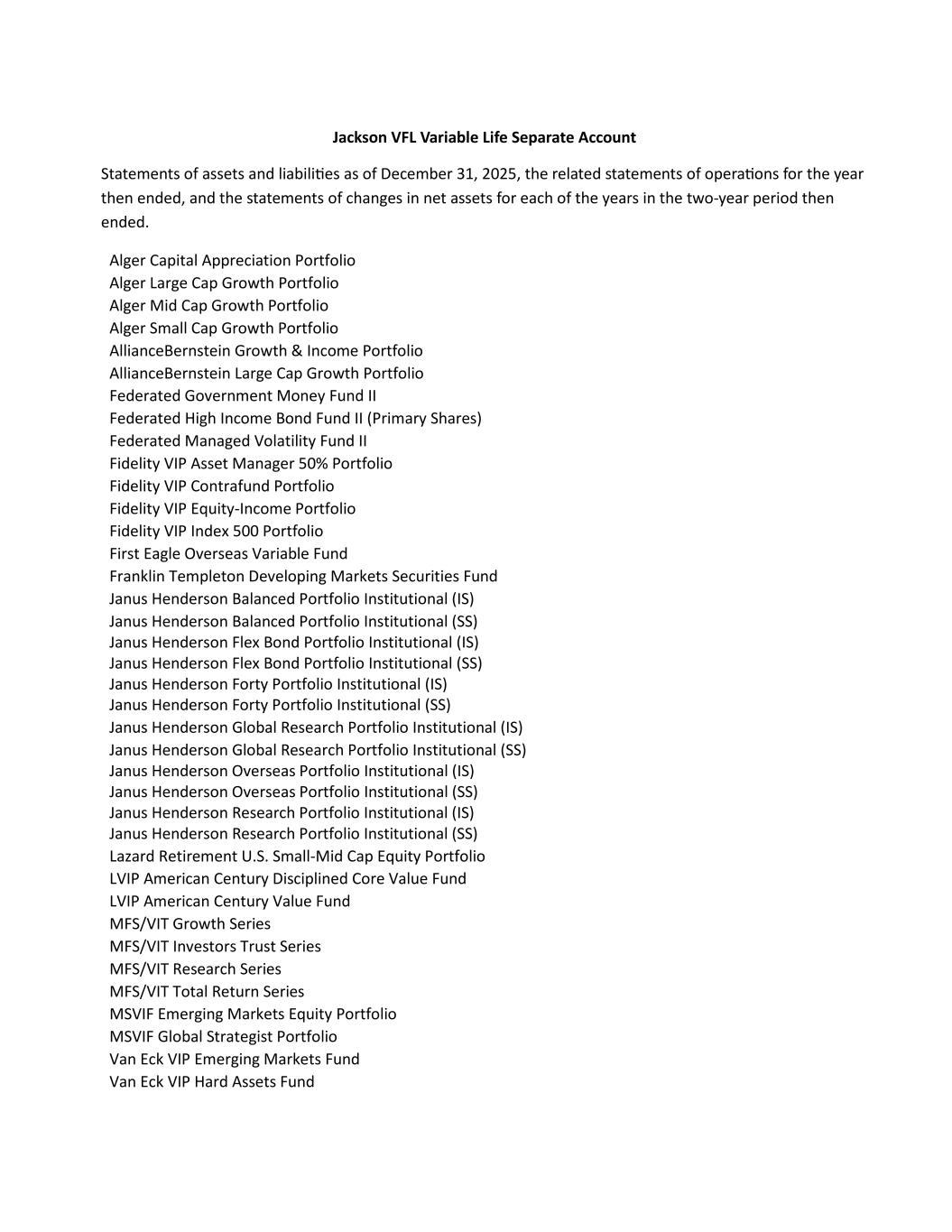 Jackson VFL Variable Life Separate Account | |||||||||||||||||||||||