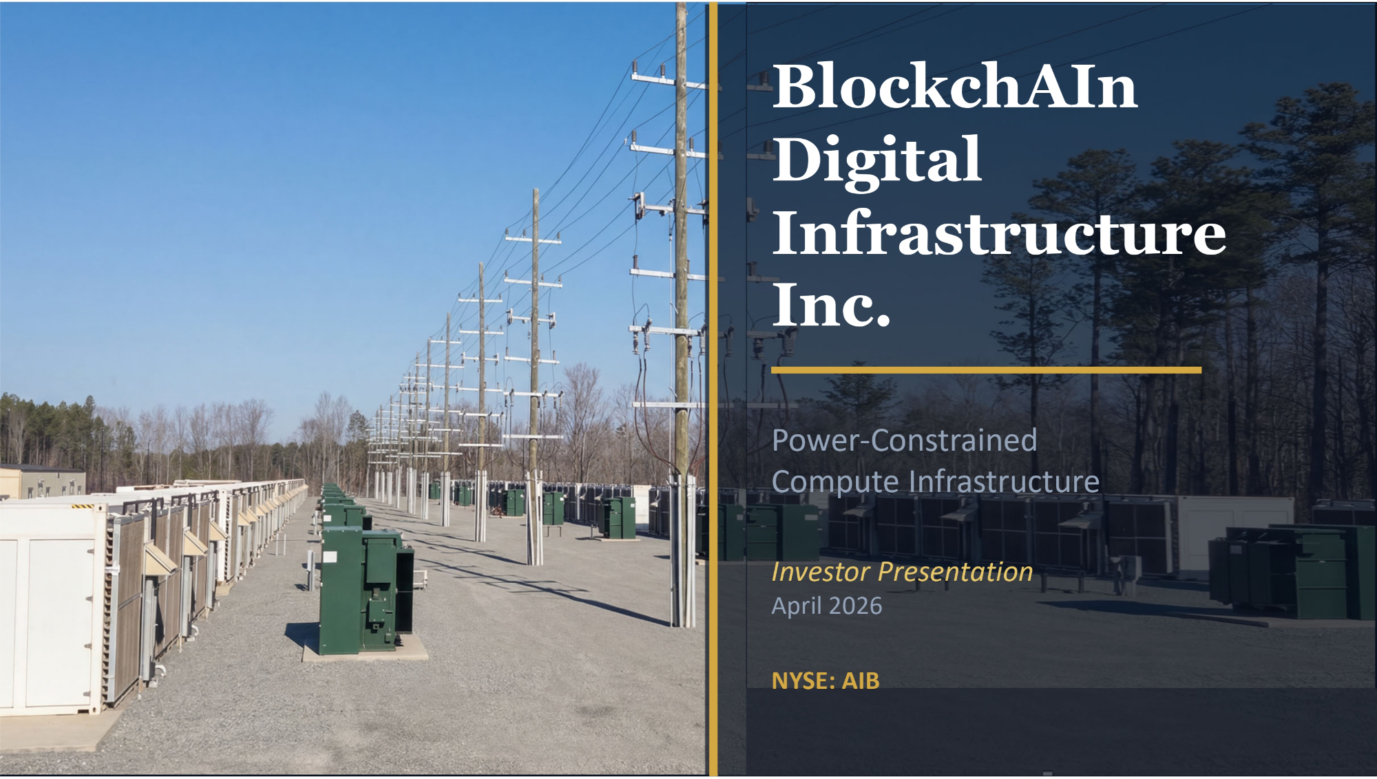 BlockchAIn Digital Infrastructure Inc. Power - Constrained Compute Infrastructure Investor Presentation April 2026 NYSE: AIB