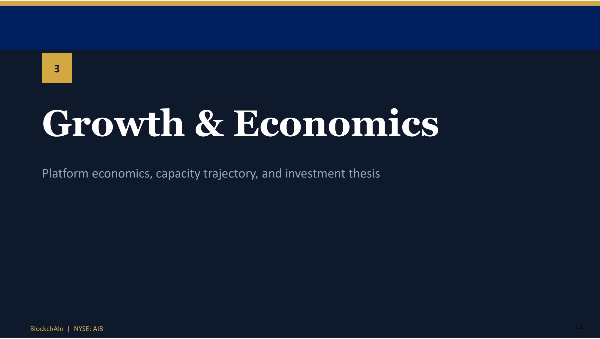 11 3 Growth & Economics Platform economics, capacity trajectory, and investment thesis BlockchAIn | NYSE: AIB