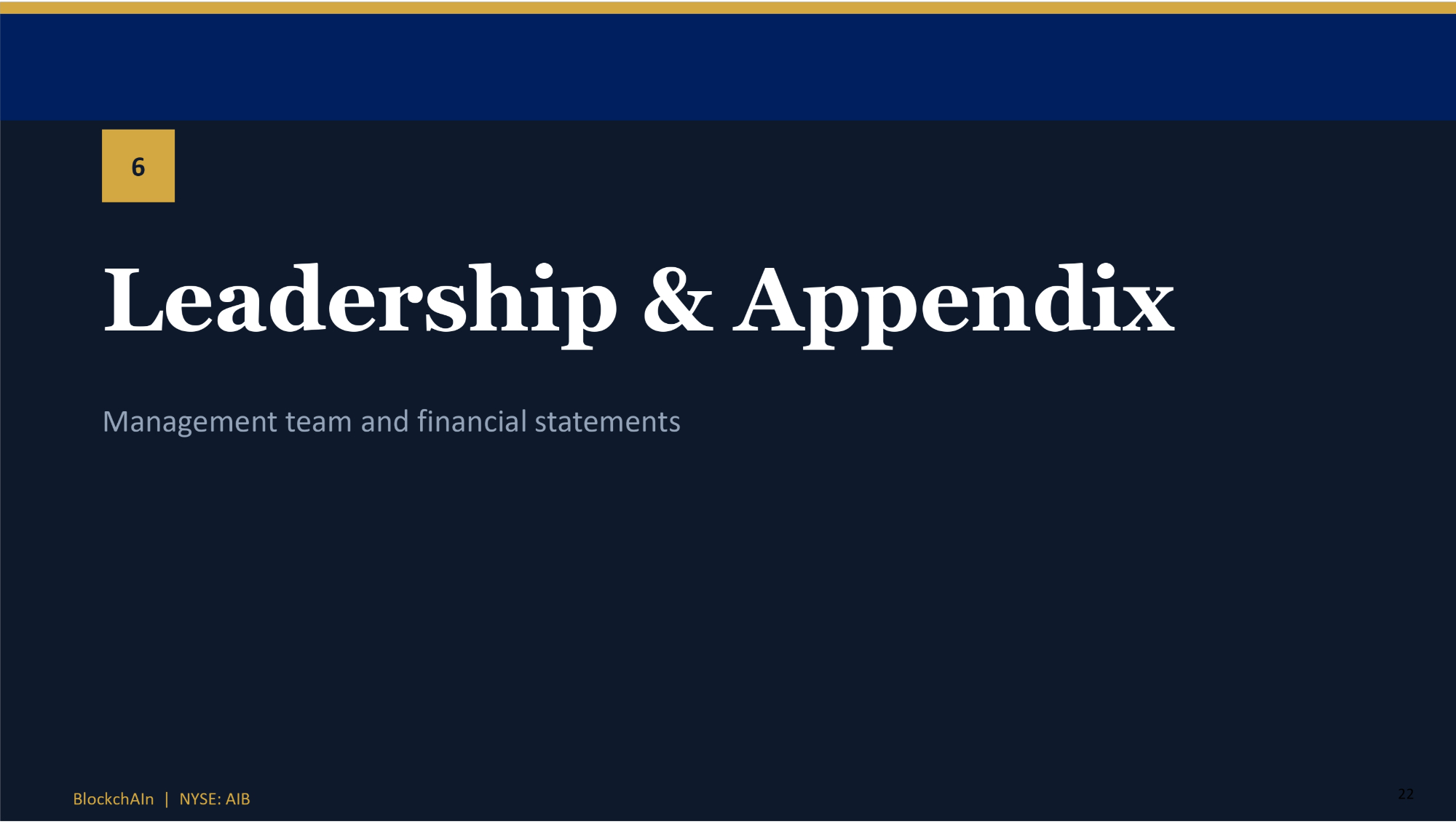 6 22 BlockchAIn | NYSE: AIB Leadership & Appendix Management team and financial statements