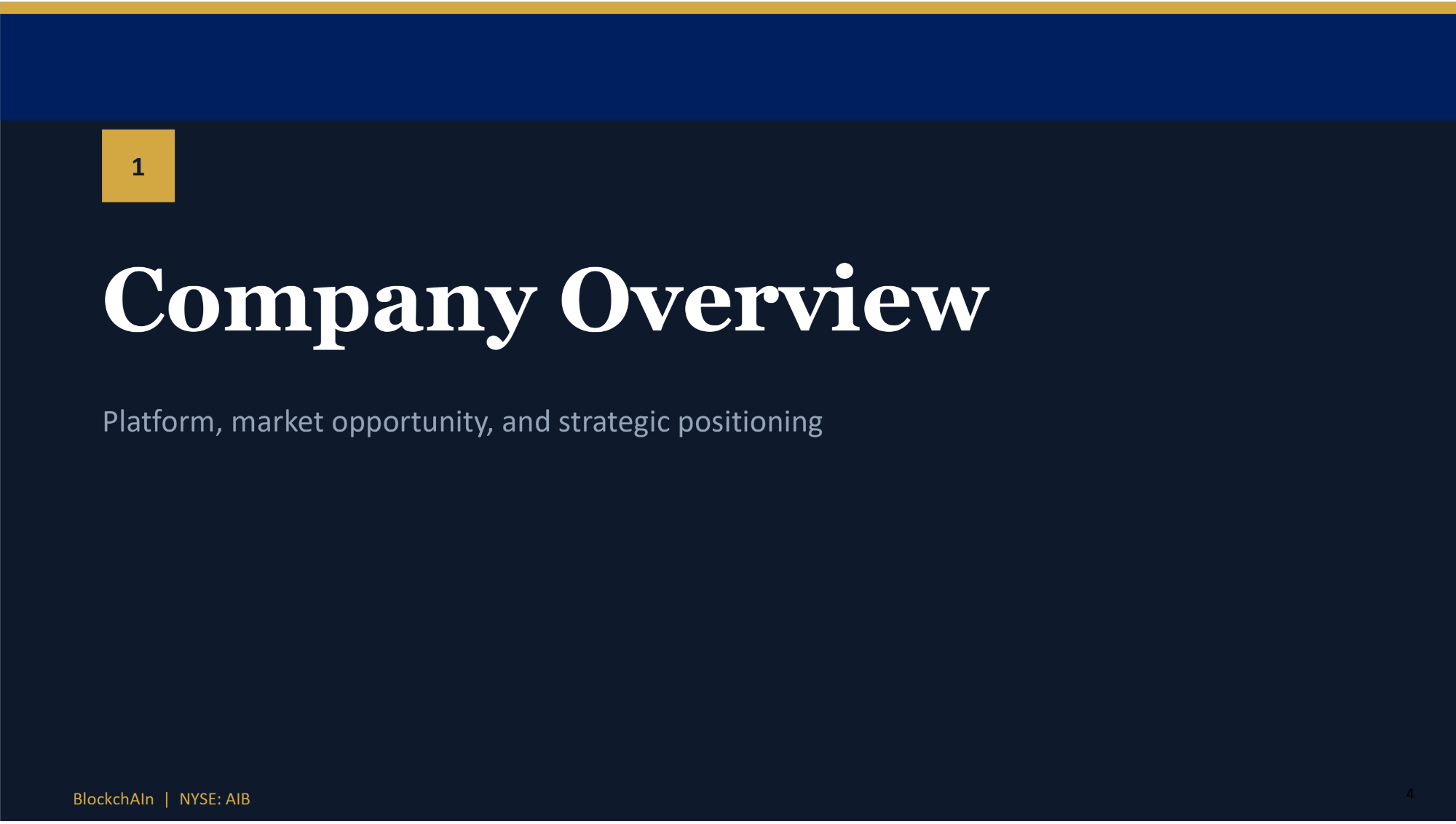 1 4 BlockchAIn | NYSE: AIB Company Overview Platform, market opportunity, and strategic positioning