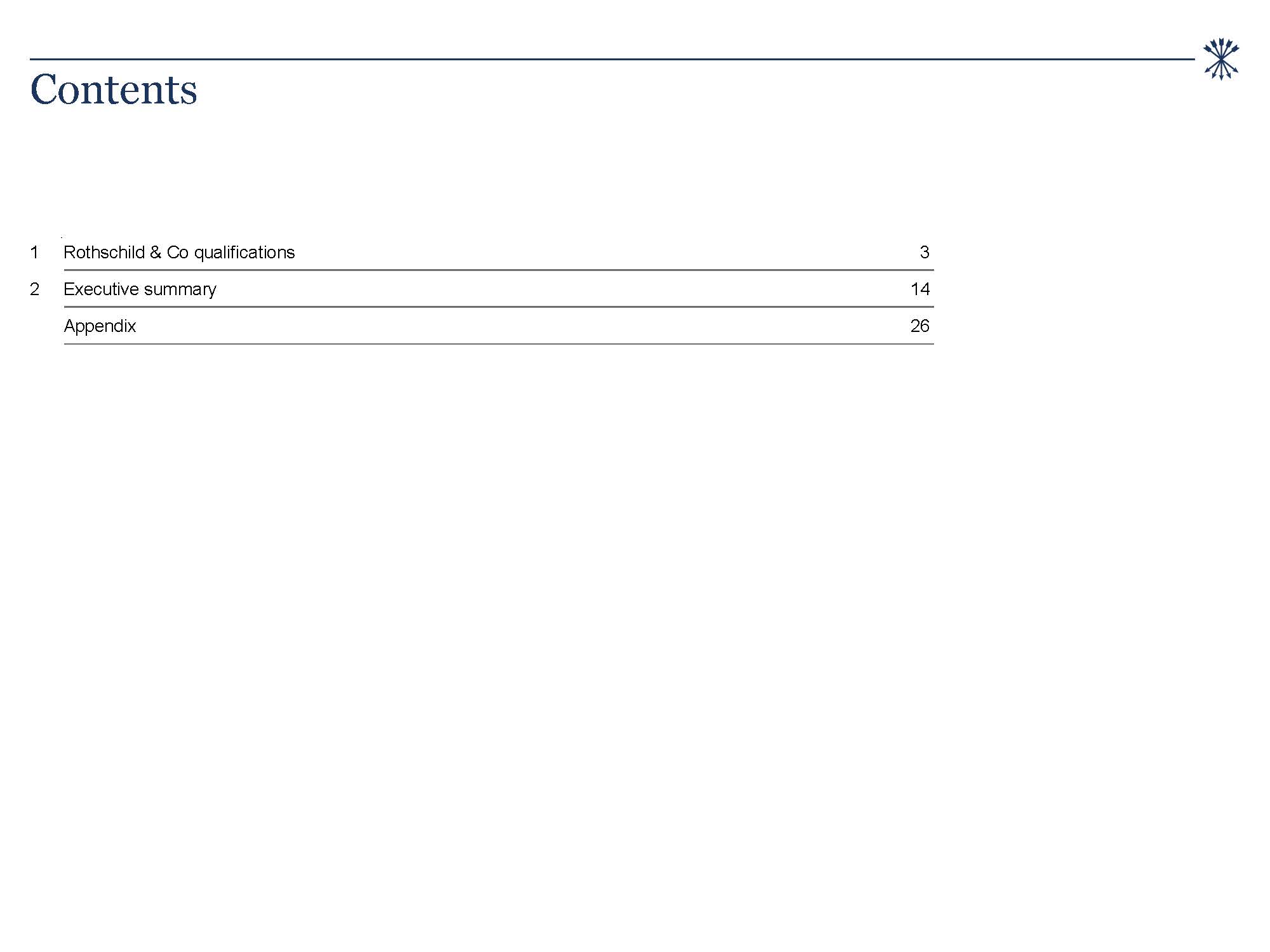 Contents  Rothschild & Co qualifications  Executive summary  Appendix  3  14  26