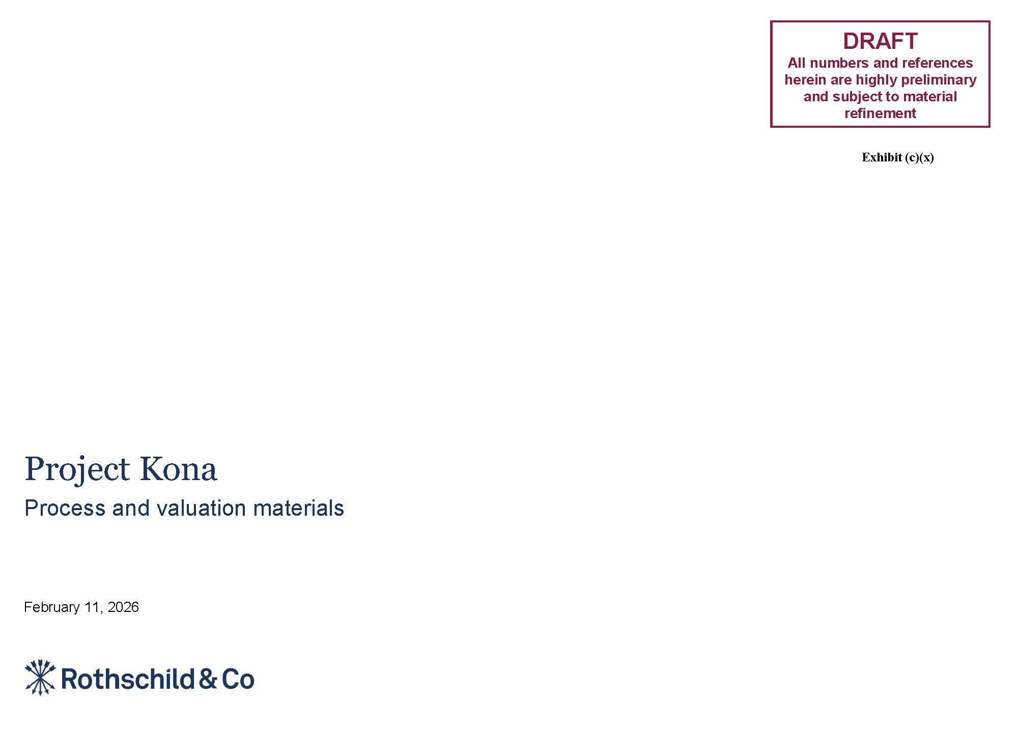 Project Kona  Process and valuation materials  February 11, 2026  DRAFT  All numbers and references herein are highly preliminary and subject to material refinement  Exhibit (c)(x)