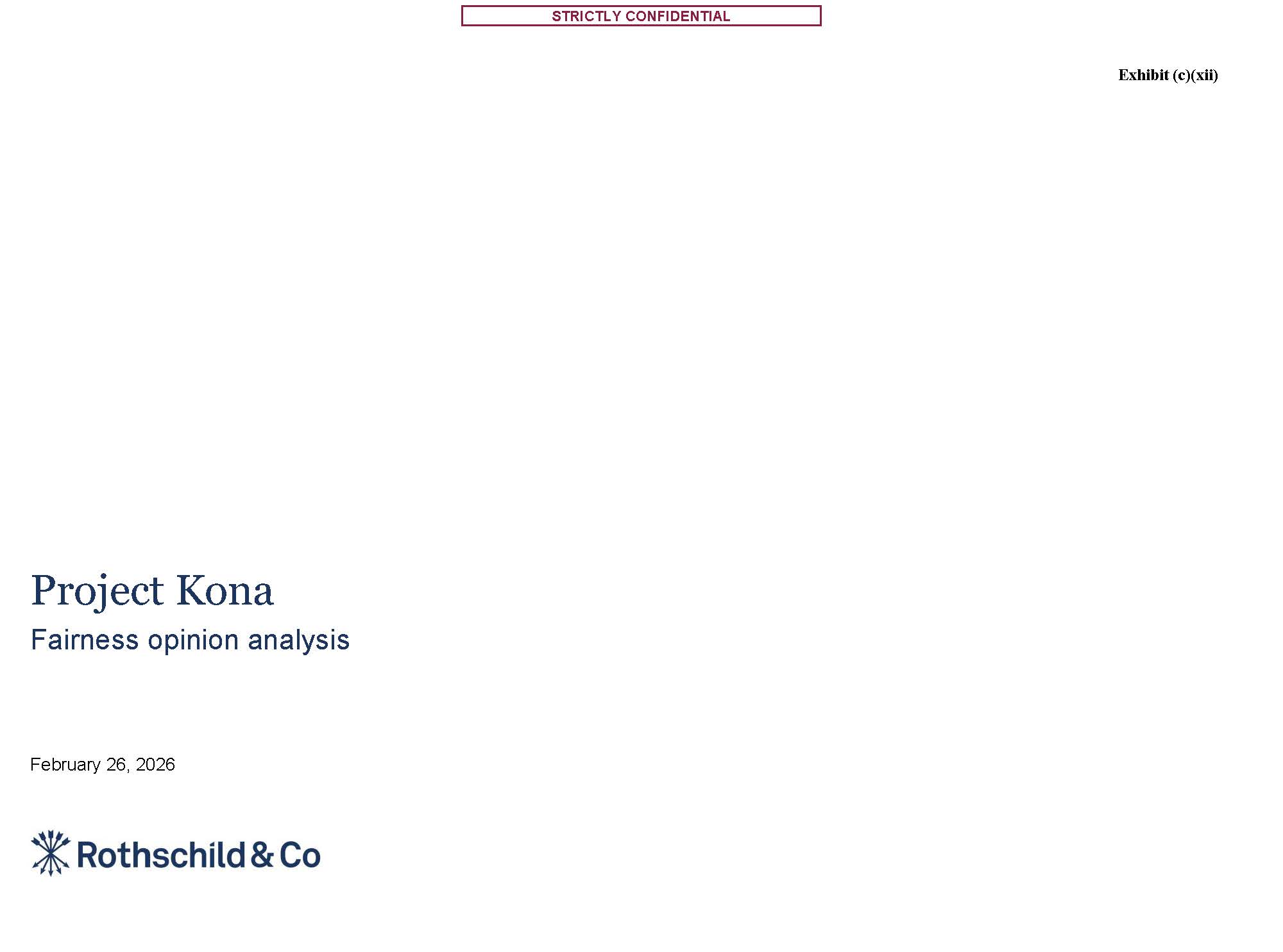 solicitation to sell or purchase any securities. Rothschild & Co is not acting in any capacity as a fiduciary or agent of the Special Committee, the Board of Directors of the Company, the Company or the Company’s security holders. In the