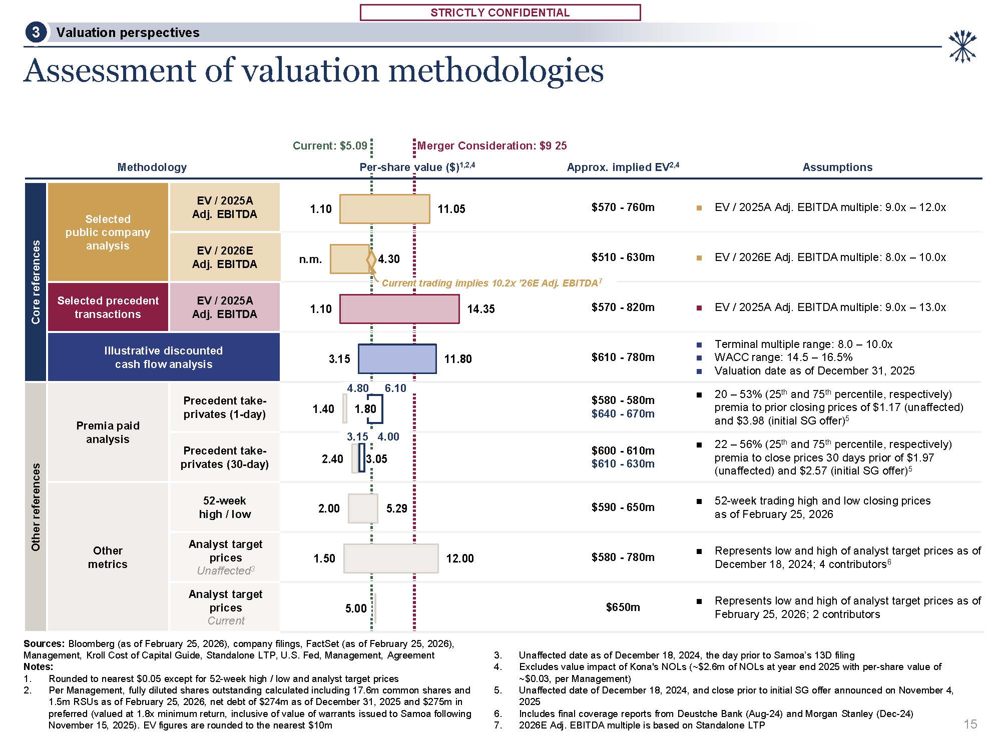 without the prior written consent of Rothschild & Co. This presentation was not prepared for use by readers not as familiar with the business and affairs of the Company as the Special Committee, and accordingly, Rothschild & Co does
