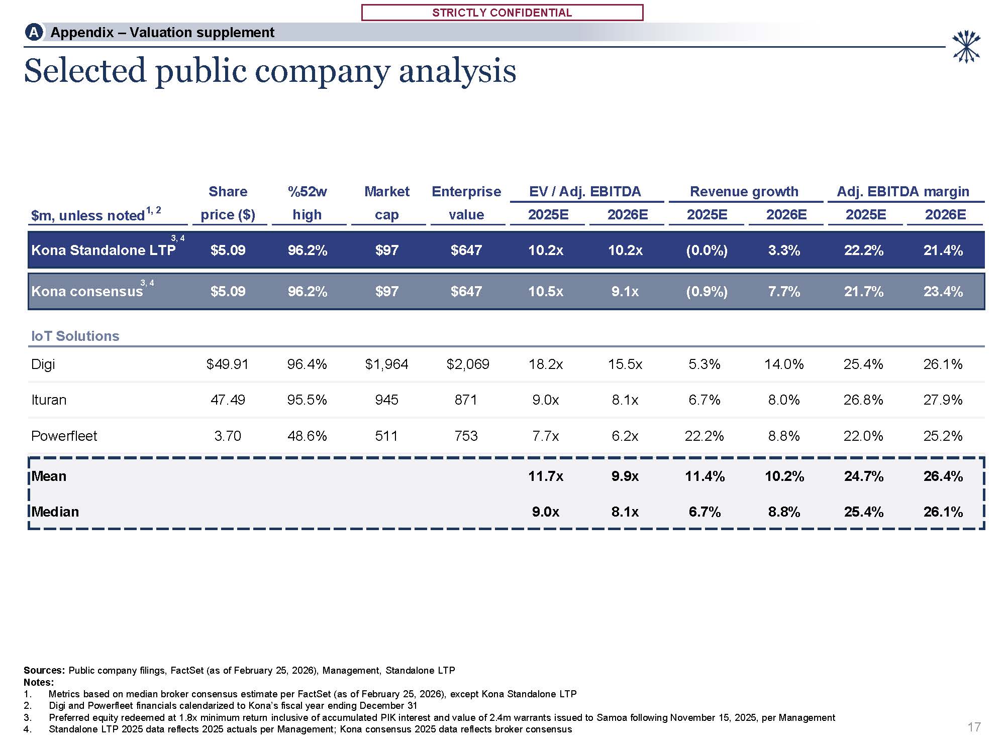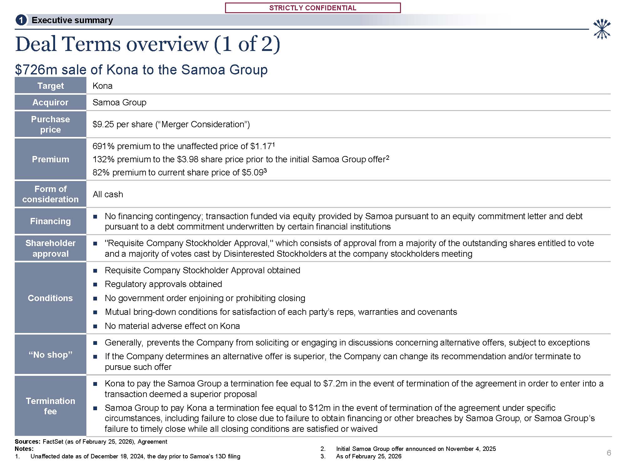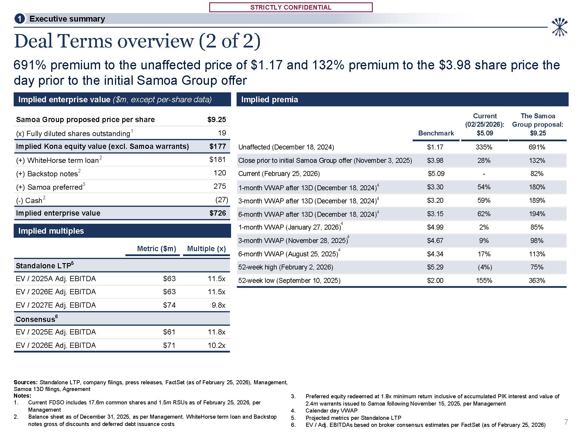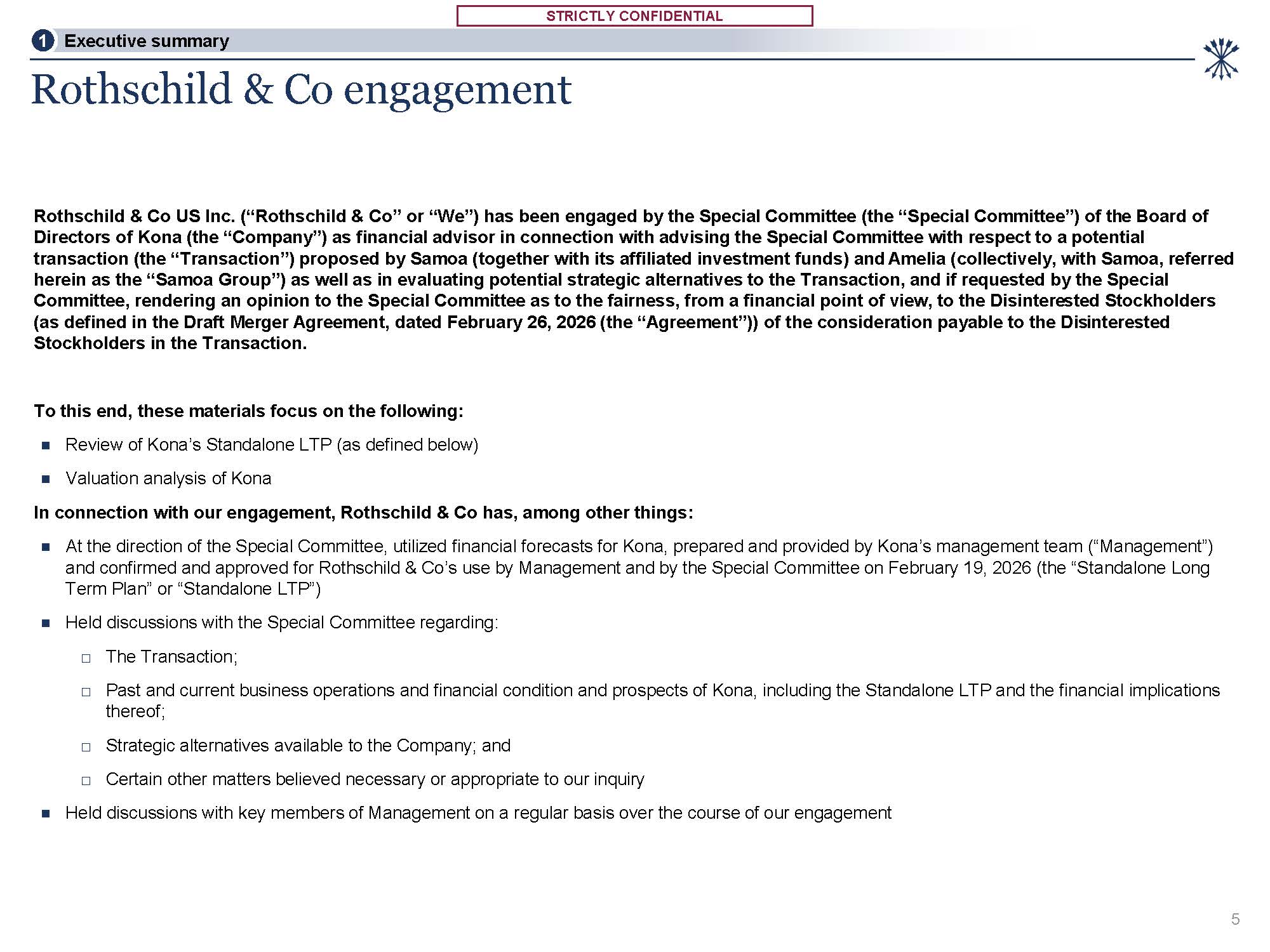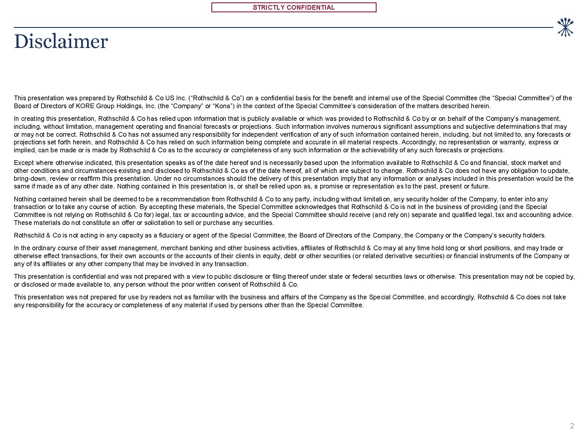 by Rothschild & Co US Inc. (“Rothschild & Co”) on a confidential basis for the benefit and internal use of the Special Committee (the “Special Committee”) of the Board of Directors of KORE Group Holdings, Inc. (the “Company” or “Kona”)